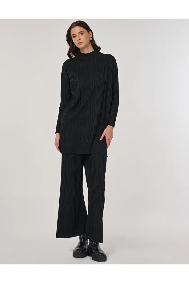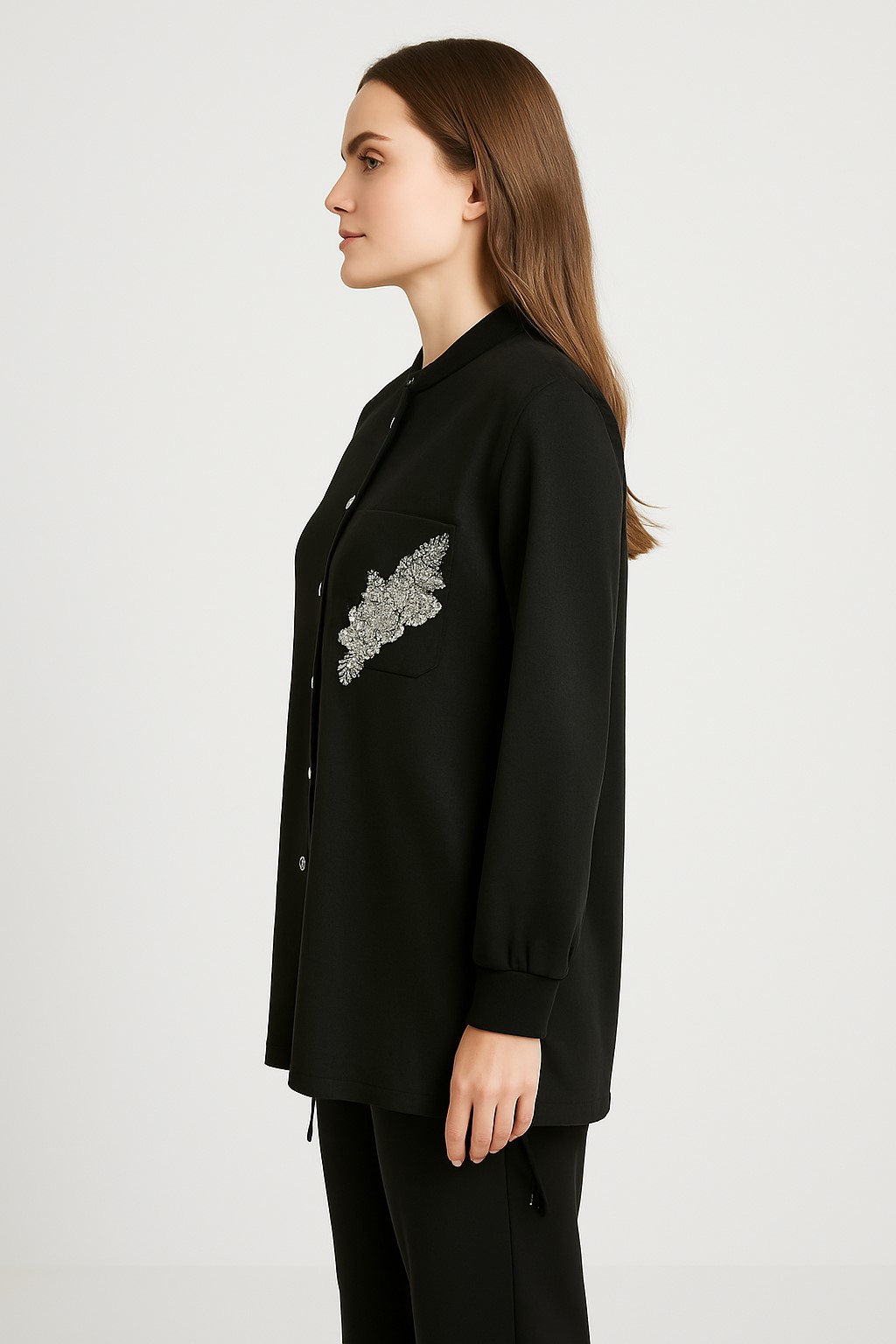KAYRA Cep Taş İşleme Detaylı Tunik 21088 Siyah