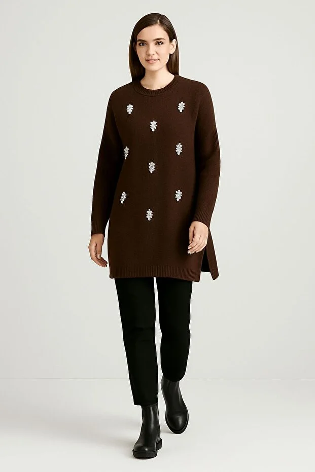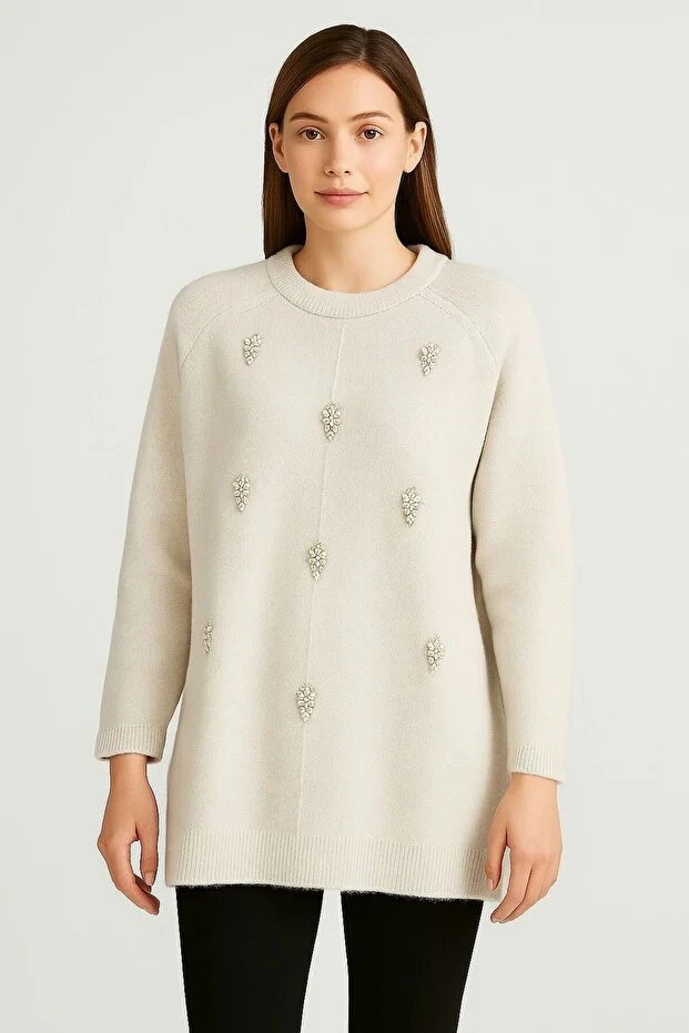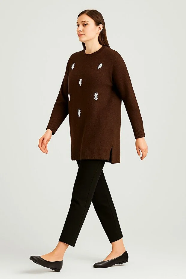 MOODBASİC Zincir Nakış Detaylı Dik Yaka 2’Li Takım 704 Vizon