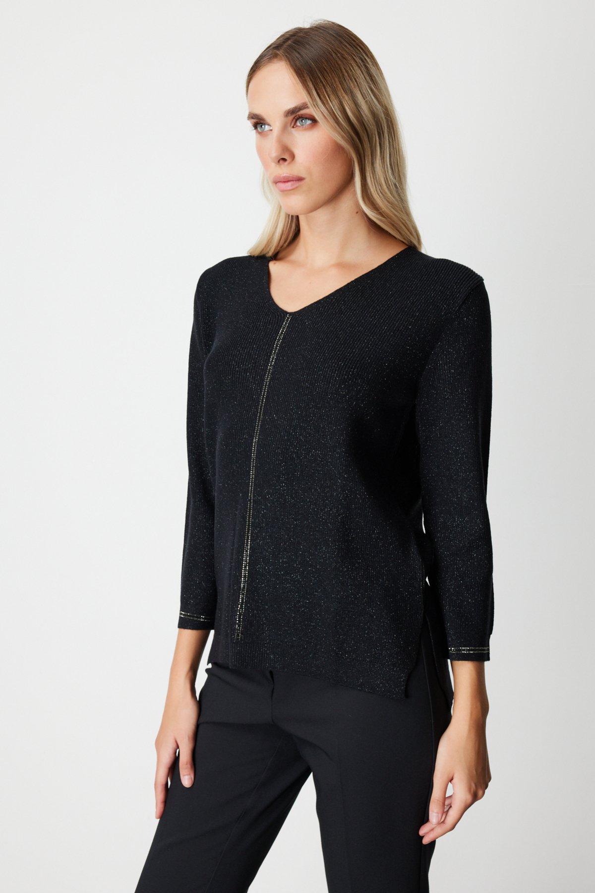ON TRİKO Simli Kumaş Taş İşlemli Triko Kazak 65326 Siyah