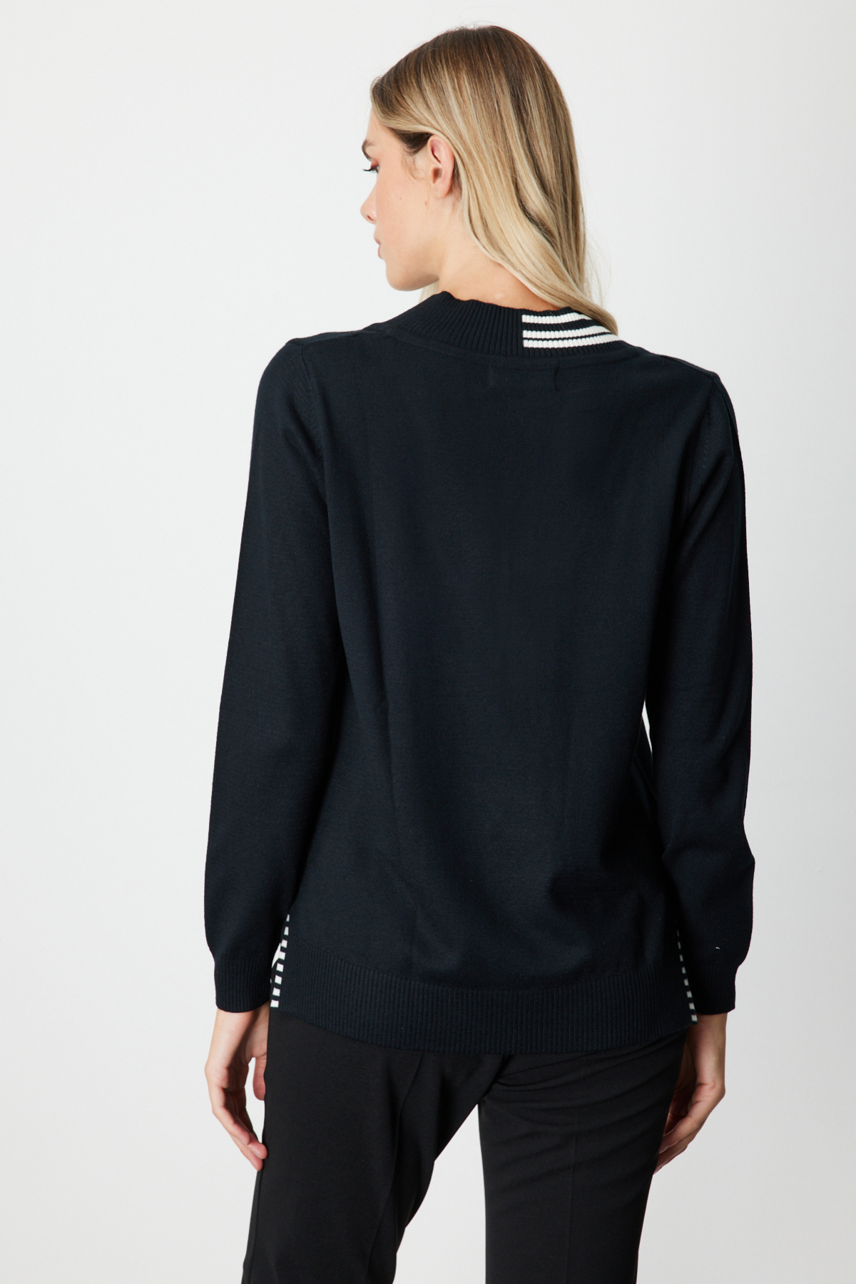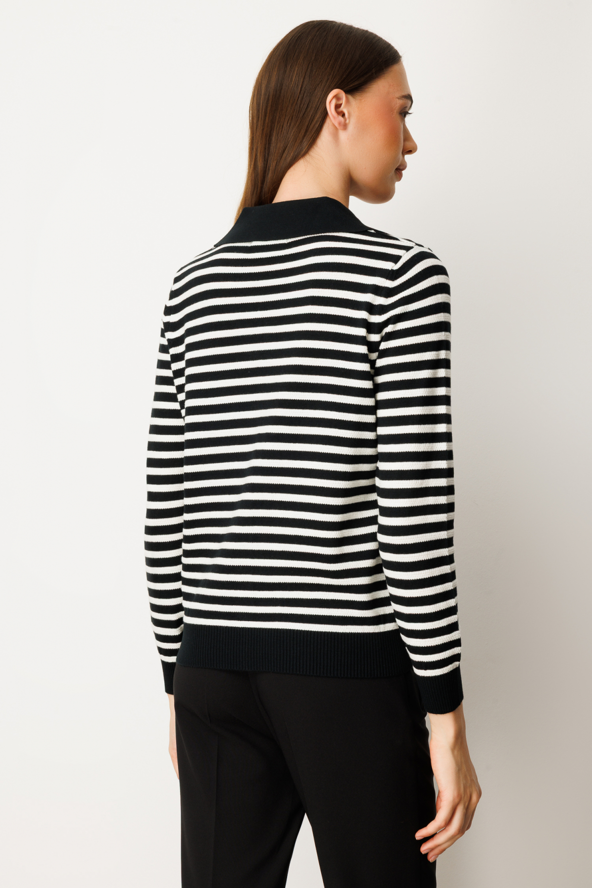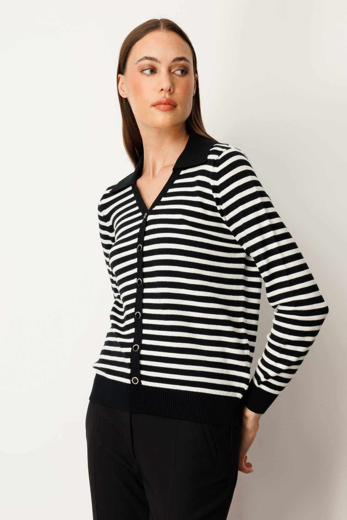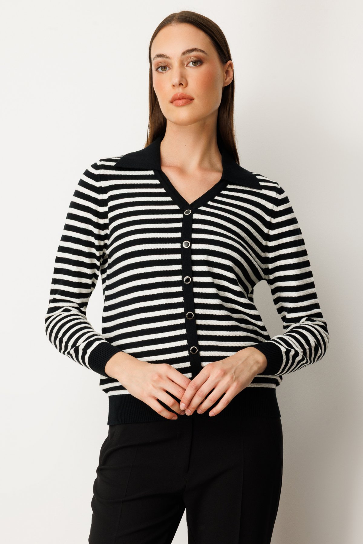 ON TRİKO Düğme Detaylı Çizgili Kazak 65367 Siyah