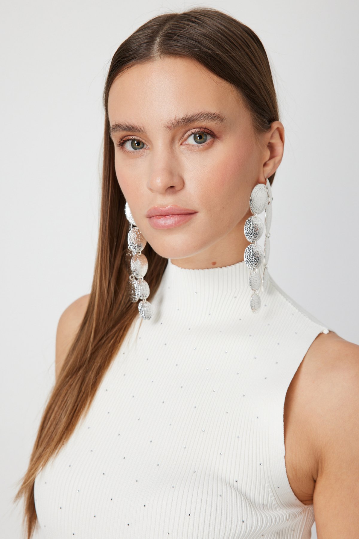 ON TRİKO Taşlı Kolsuz Triko Bluz 66375 Krem