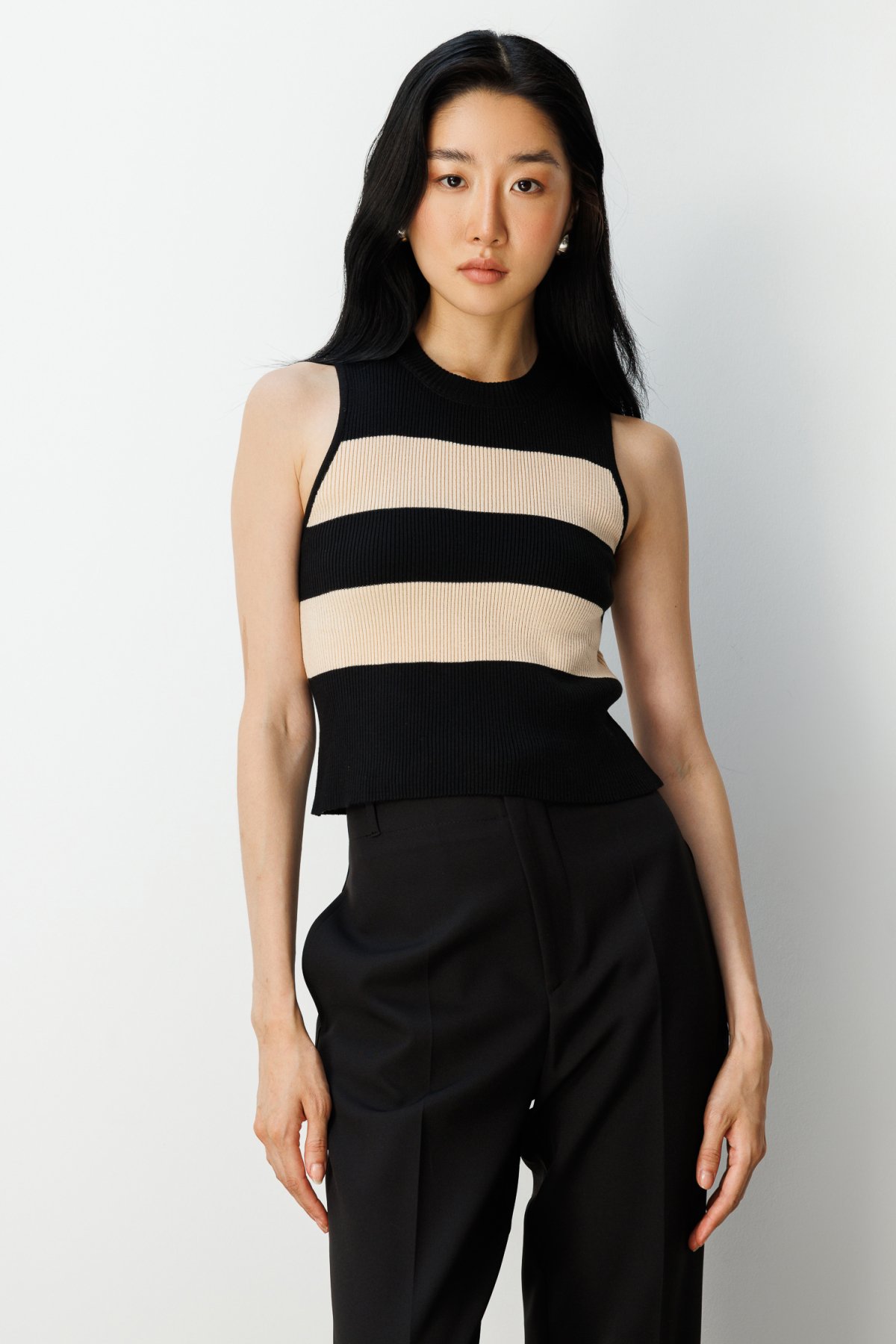 ON TRİKO Taşlı Kolsuz Triko Bluz 66375 Siyah