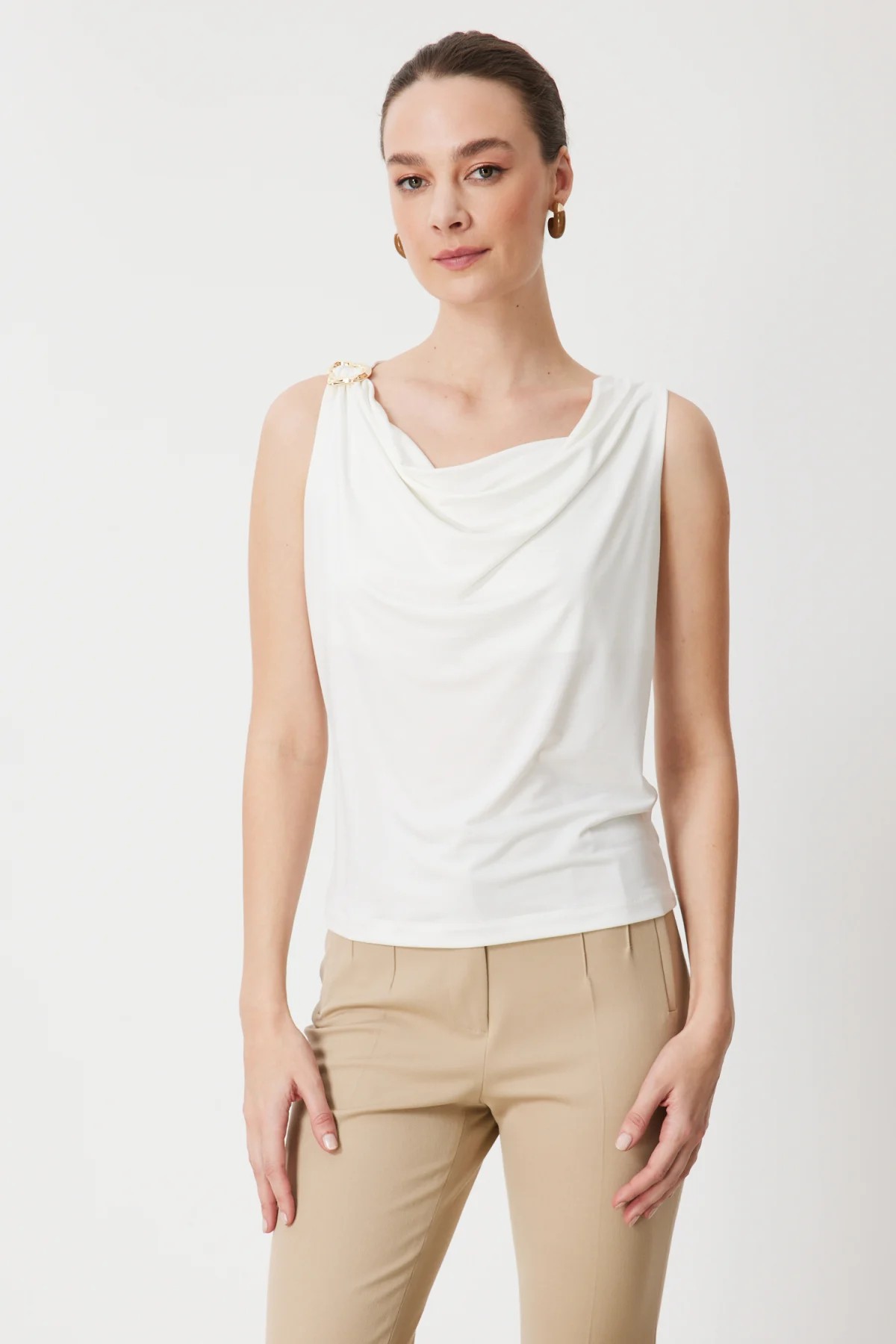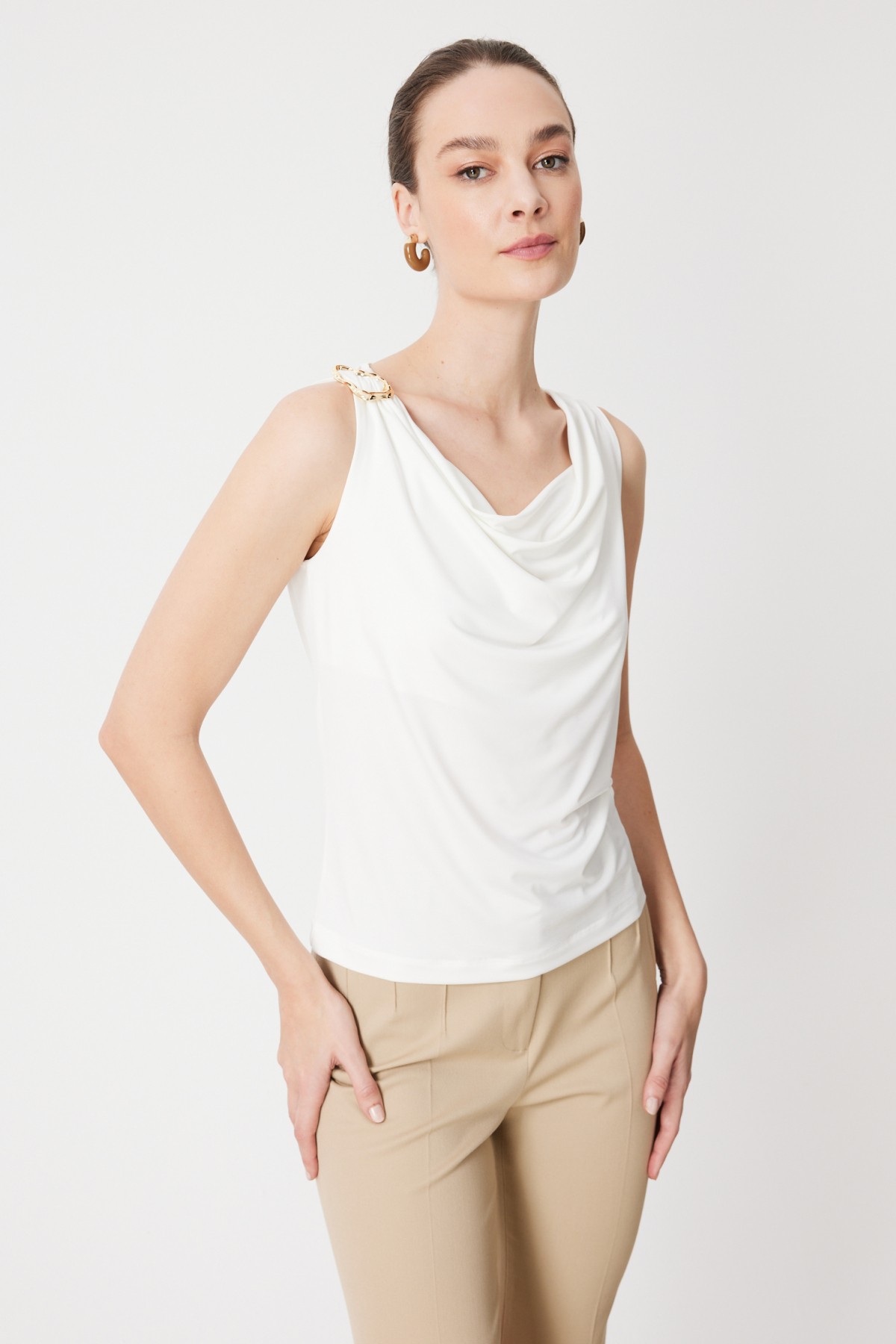 ON TRİKO Tek Omzu Aksesuarlı Degaje Yaka Bluz 71395 Ekru