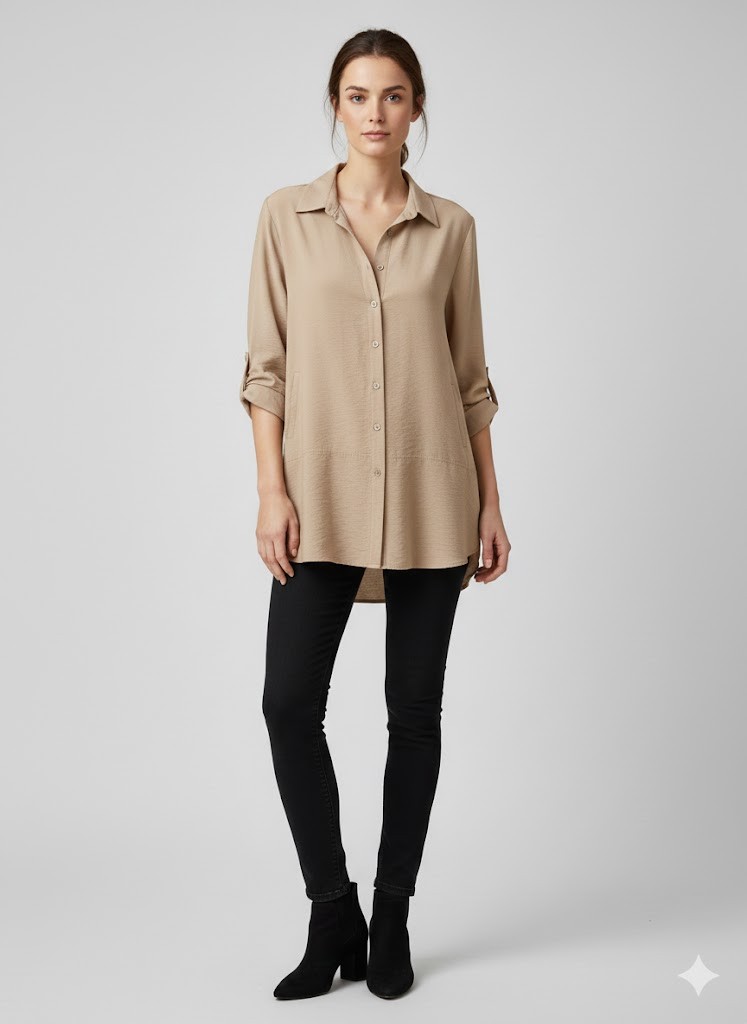 ON TRİKO Yan Cepli Polo Yaka Gömlek 72314 Bej