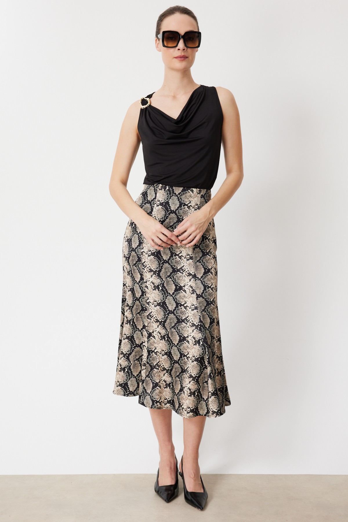 ON TRİKO Tek Omzu Aksesuarlı Degaje Yaka Bluz 71395 Siyah