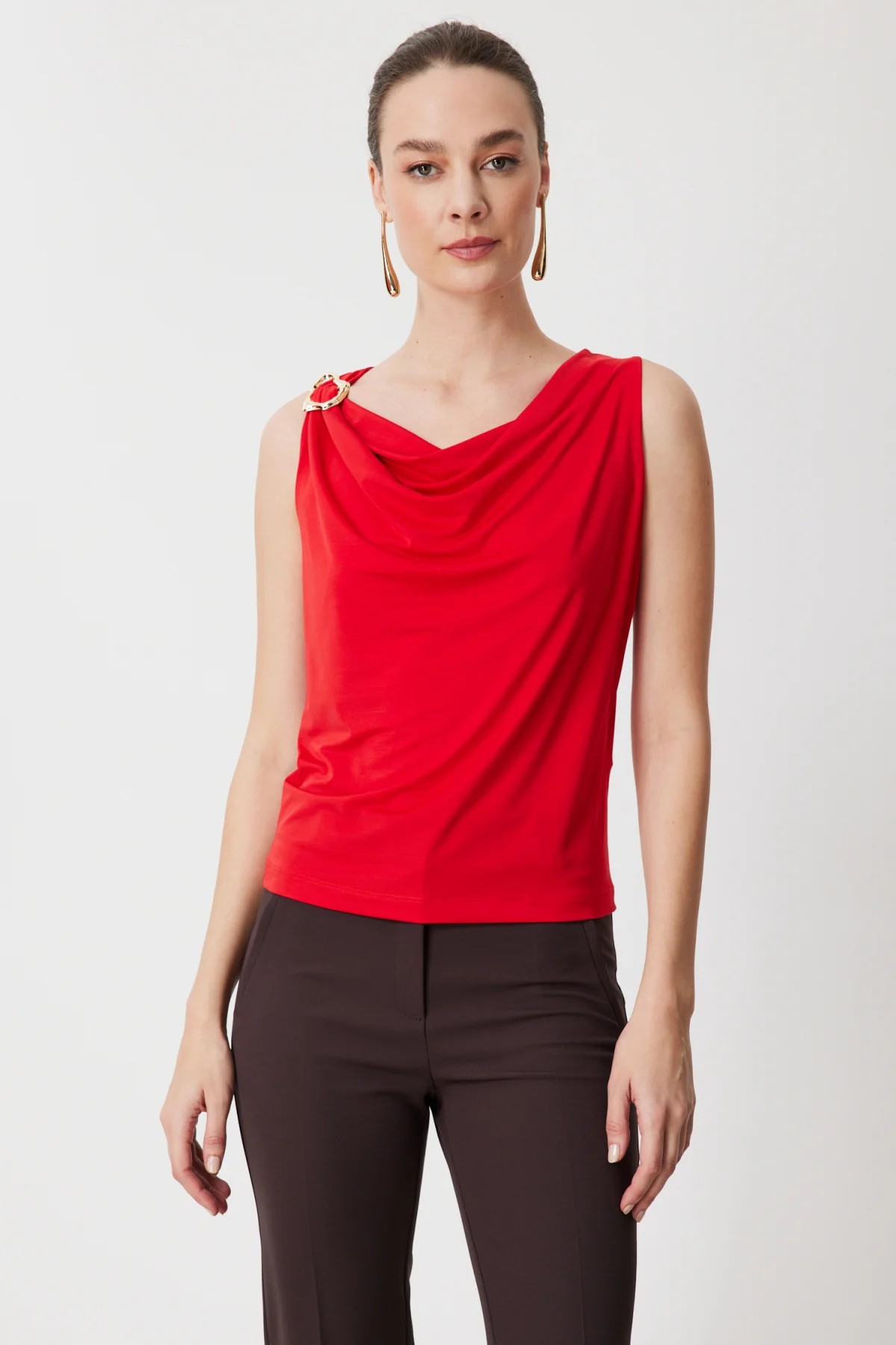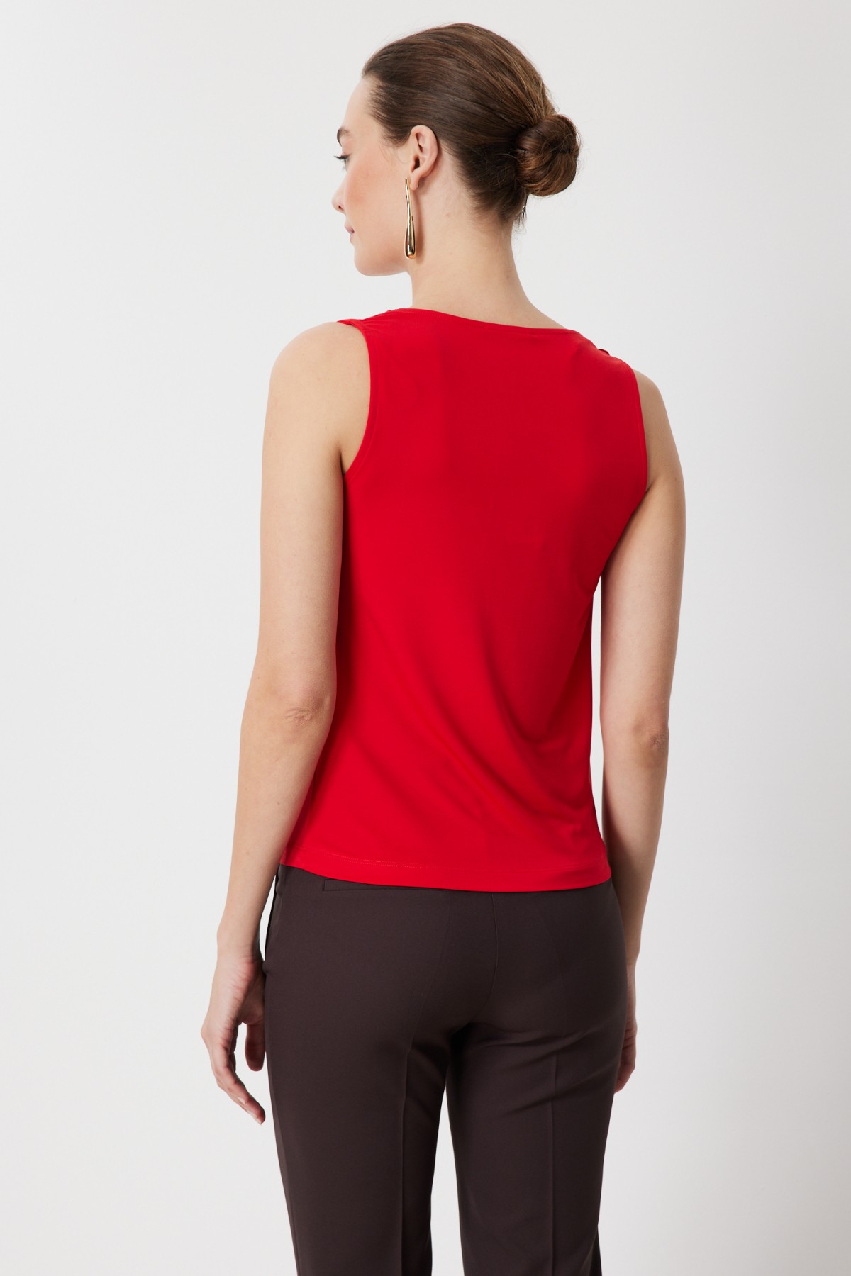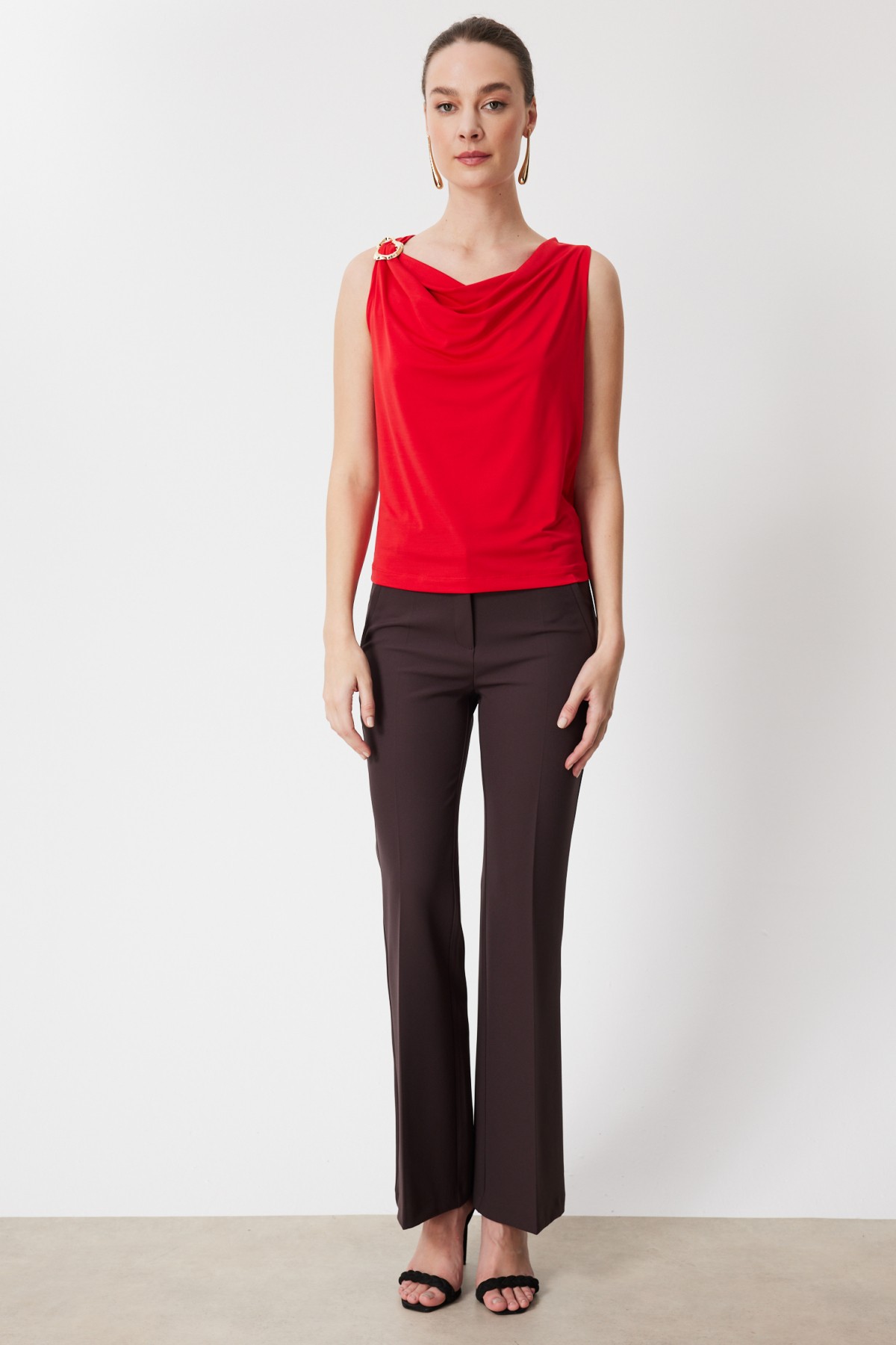ON TRİKO Tek Omzu Aksesuarlı Degaje Yaka Bluz 71395 Kırmızı