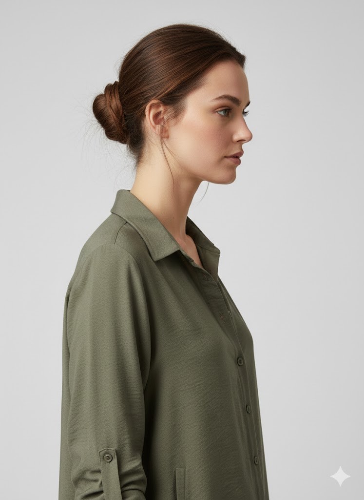ON TRİKO Yan Cepli Polo Yaka Gömlek 72314 Haki