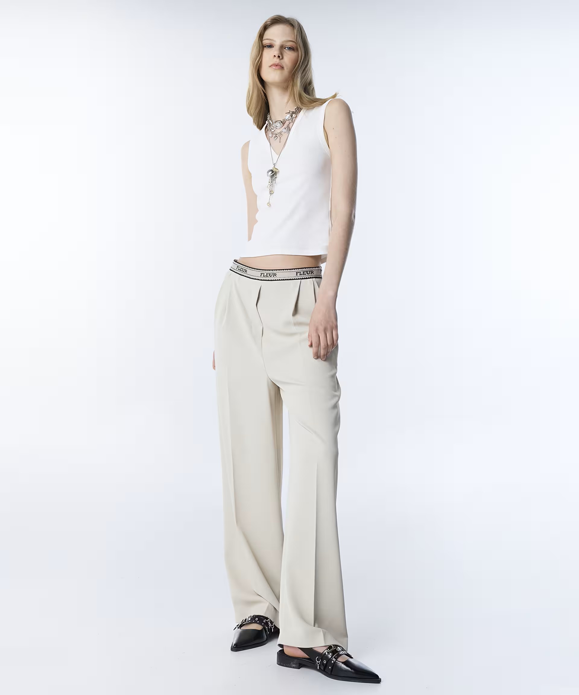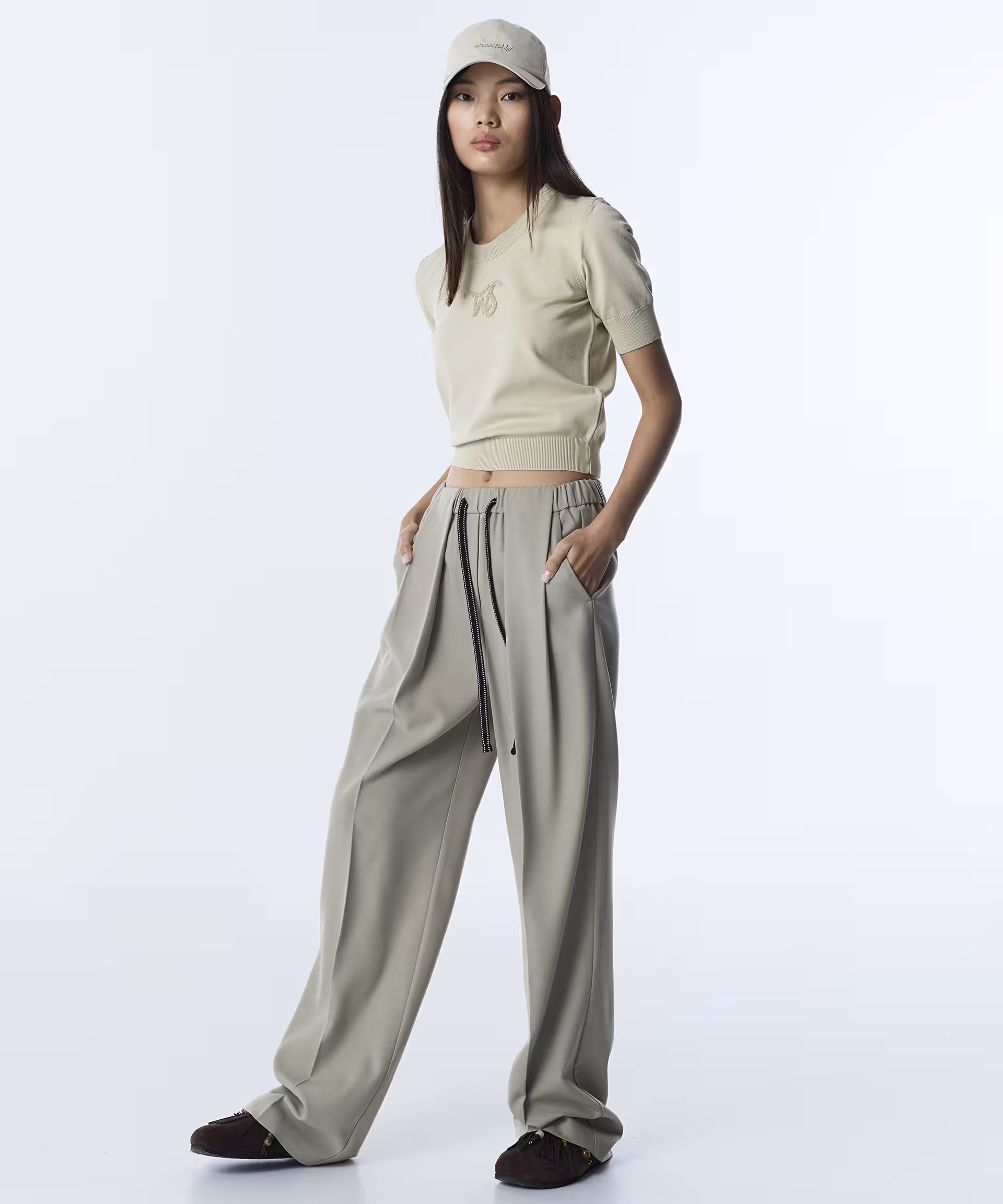 TWİST Kontrast Bağcıklı Wıde Leg Pantolon TS1260003206 Taş