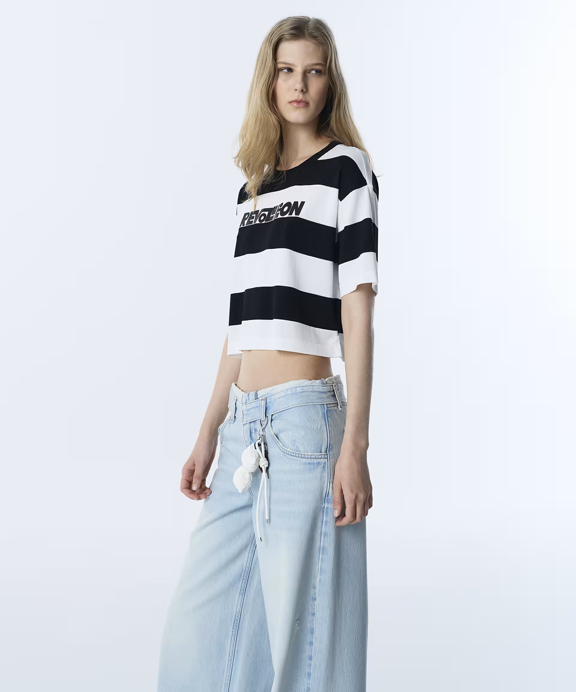 TWİST Sloganlı Çizgi Desen Triko TS1260050028 Ekru