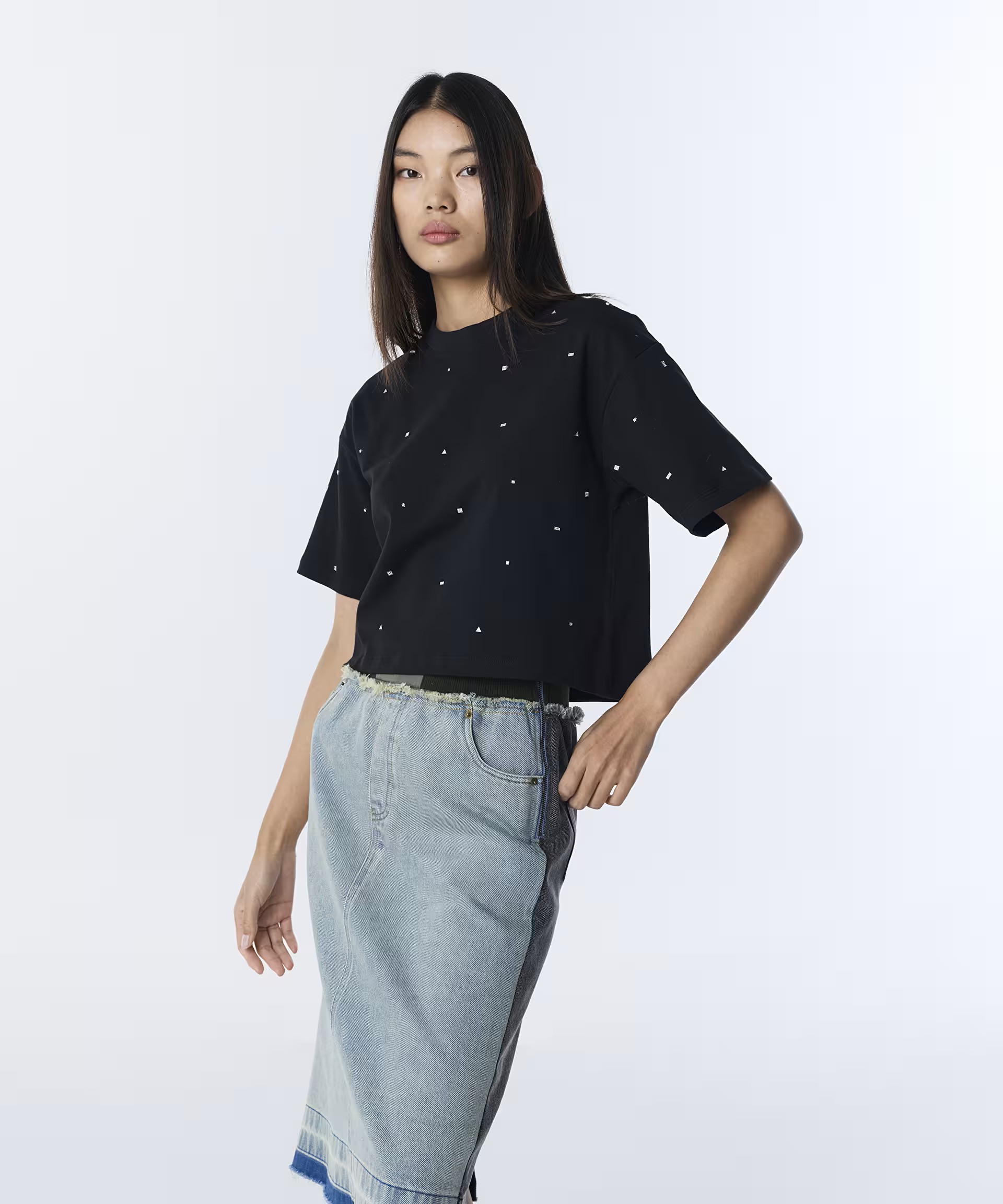 TWİST Triko Karma Aksesuarlı T-Shirt Siyah