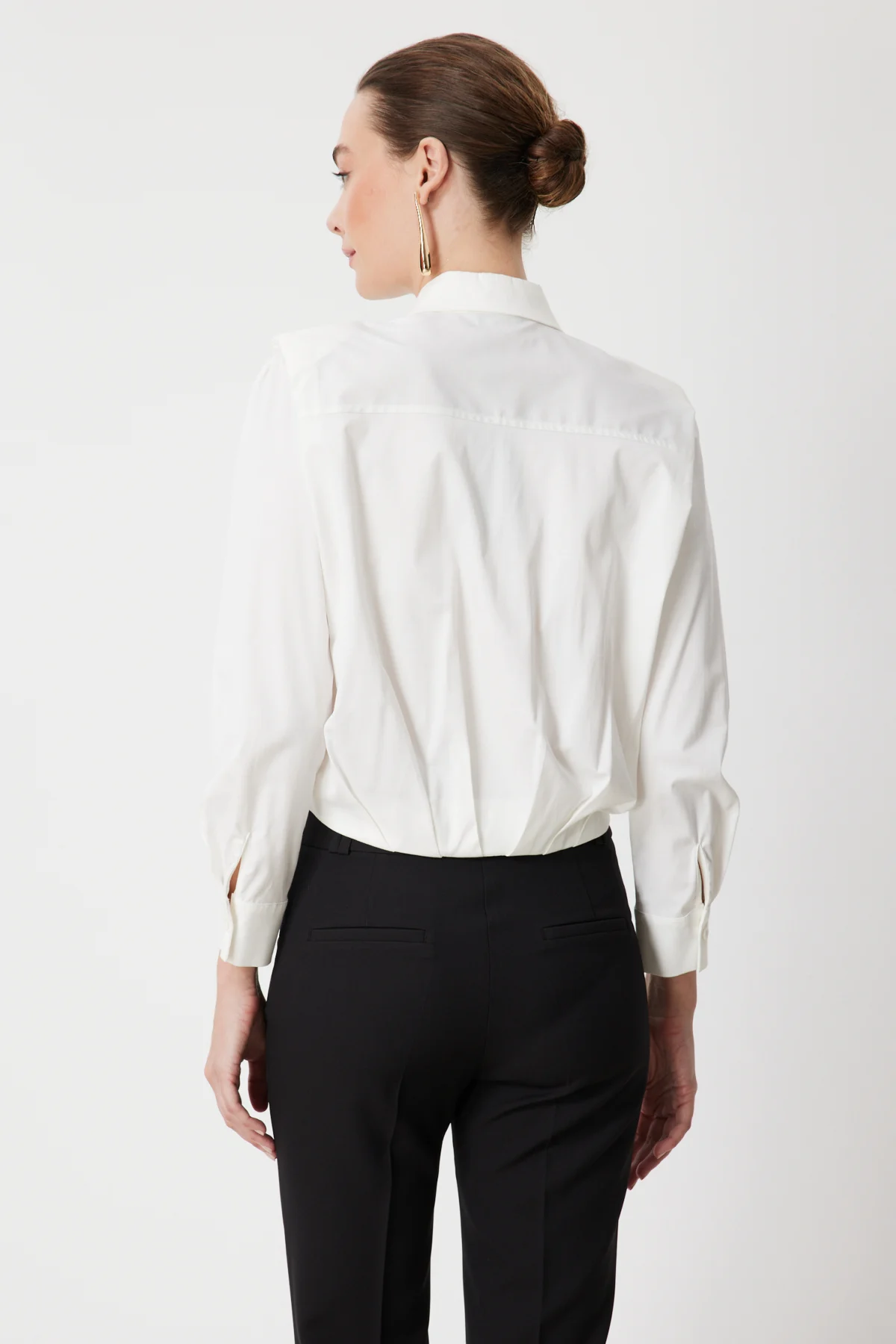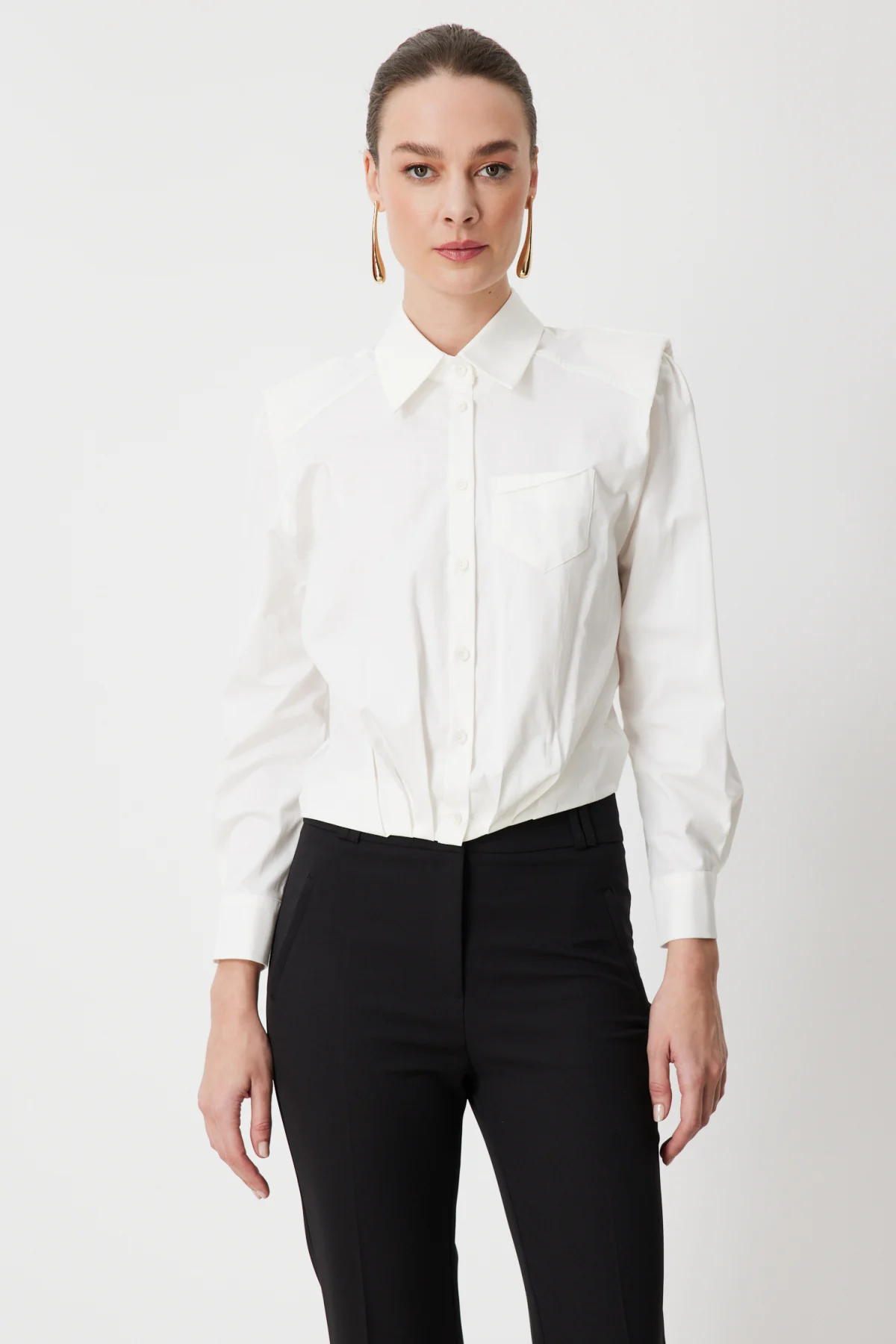 ON TRİKO Vatkalı Beli Pileli Pamuk Gömlek 72303 Beyaz