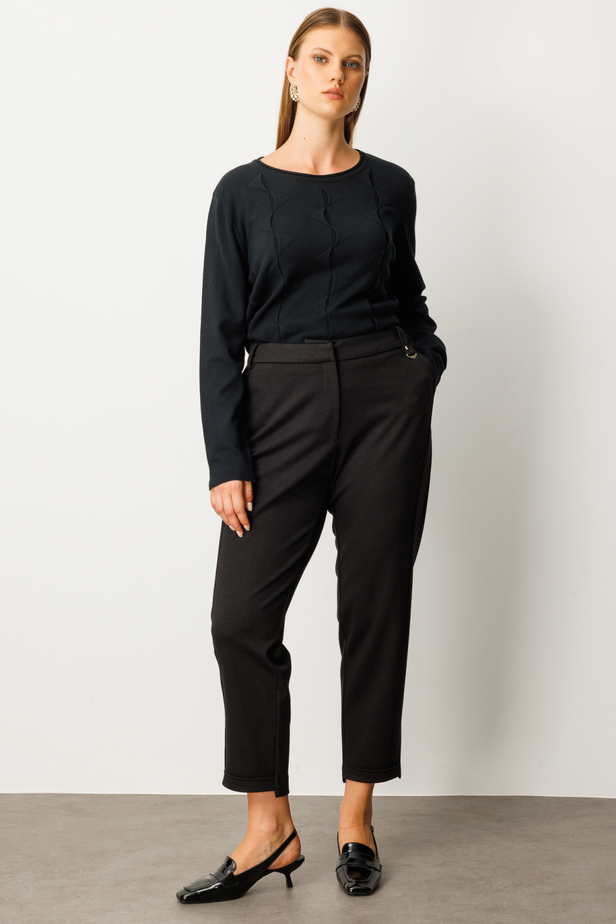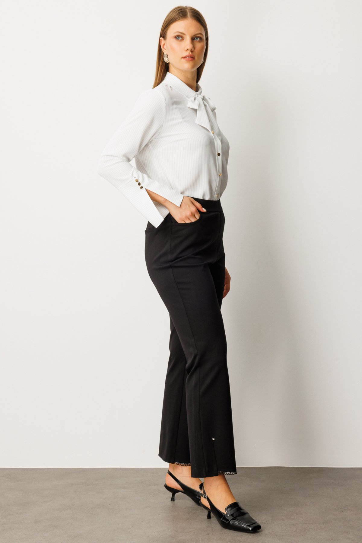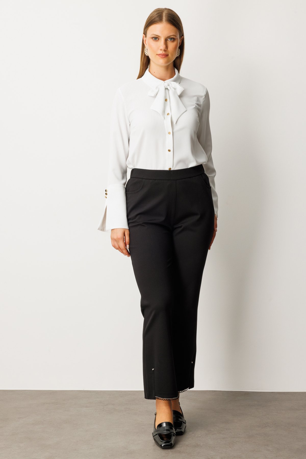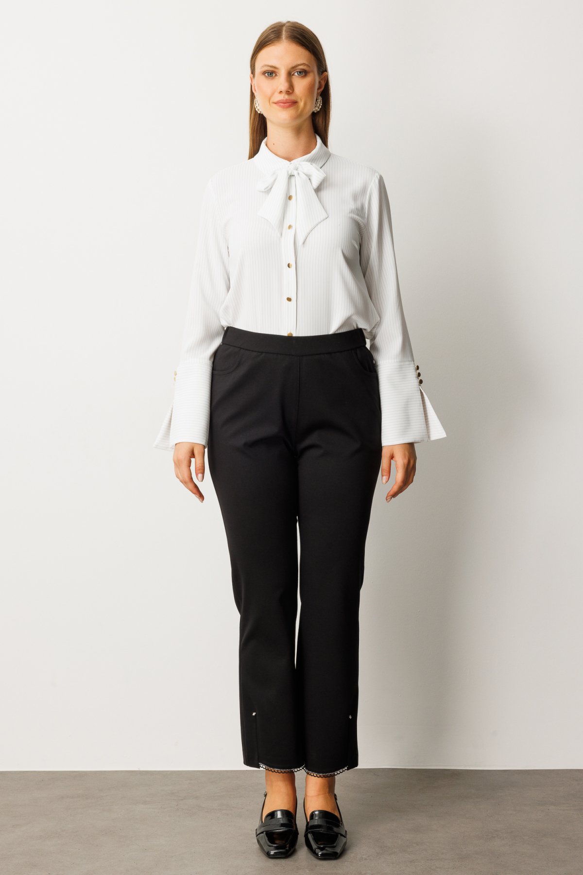 EKOL Paçası Taşlı Dantelli Pantolon 1091 Siyah