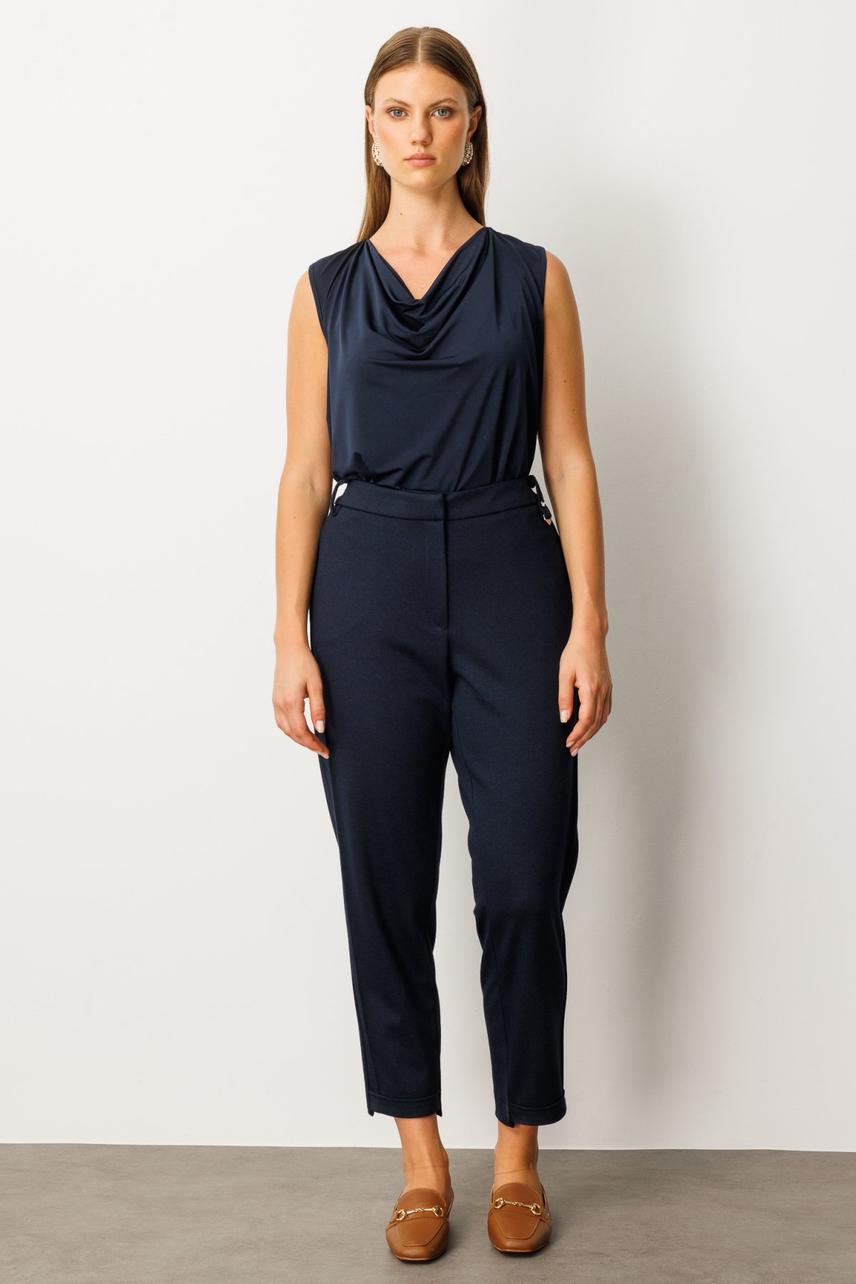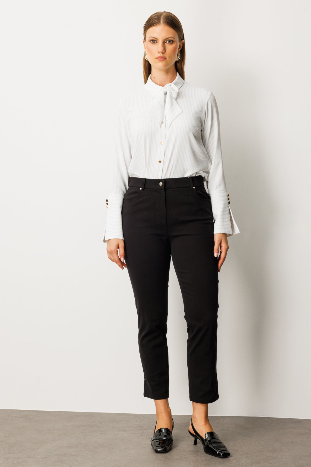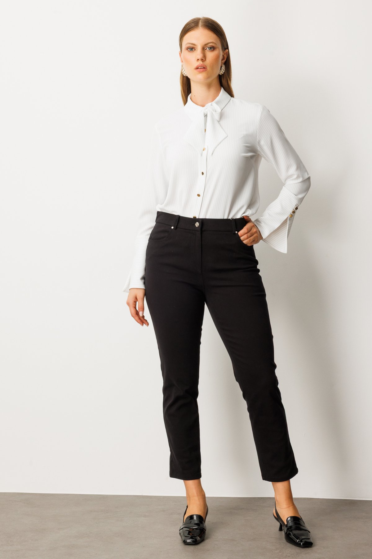 EKOL Paçası Taşlı Dantelli Pantolon 1091 Siyah