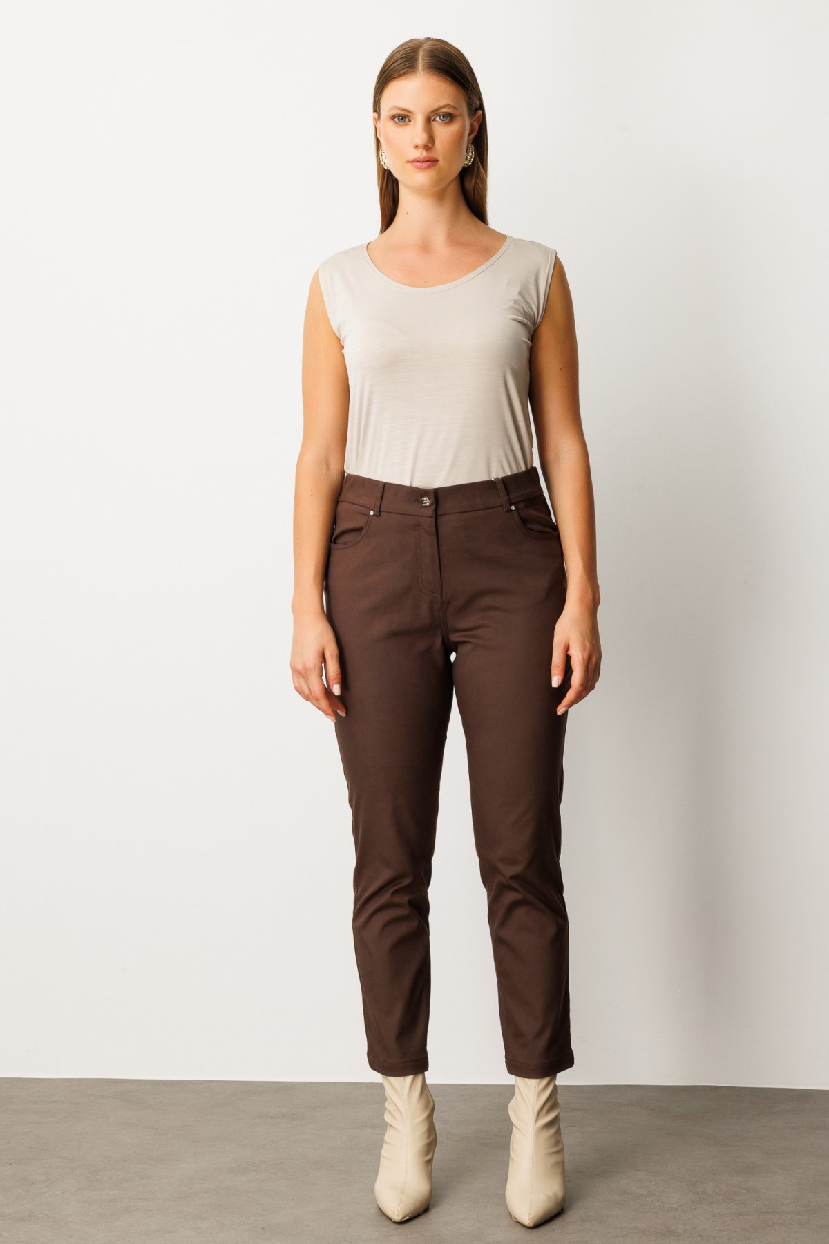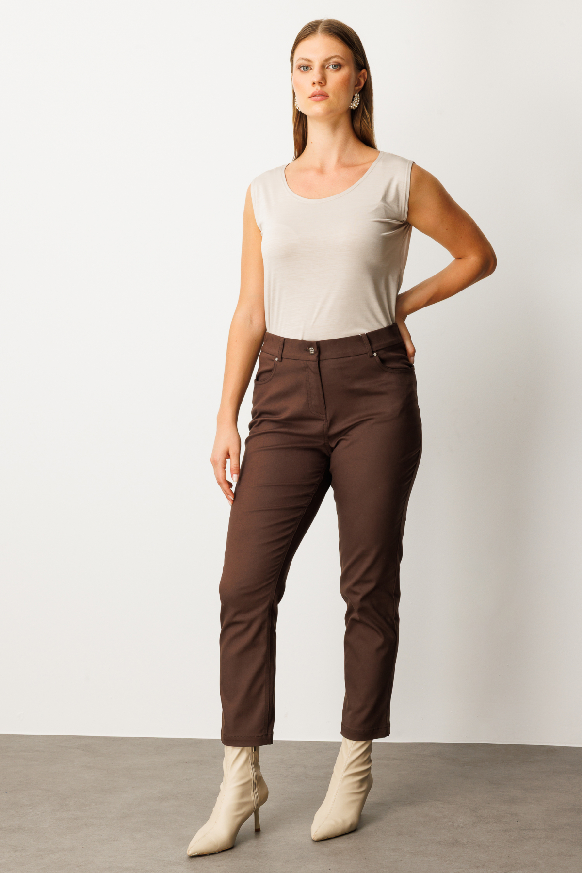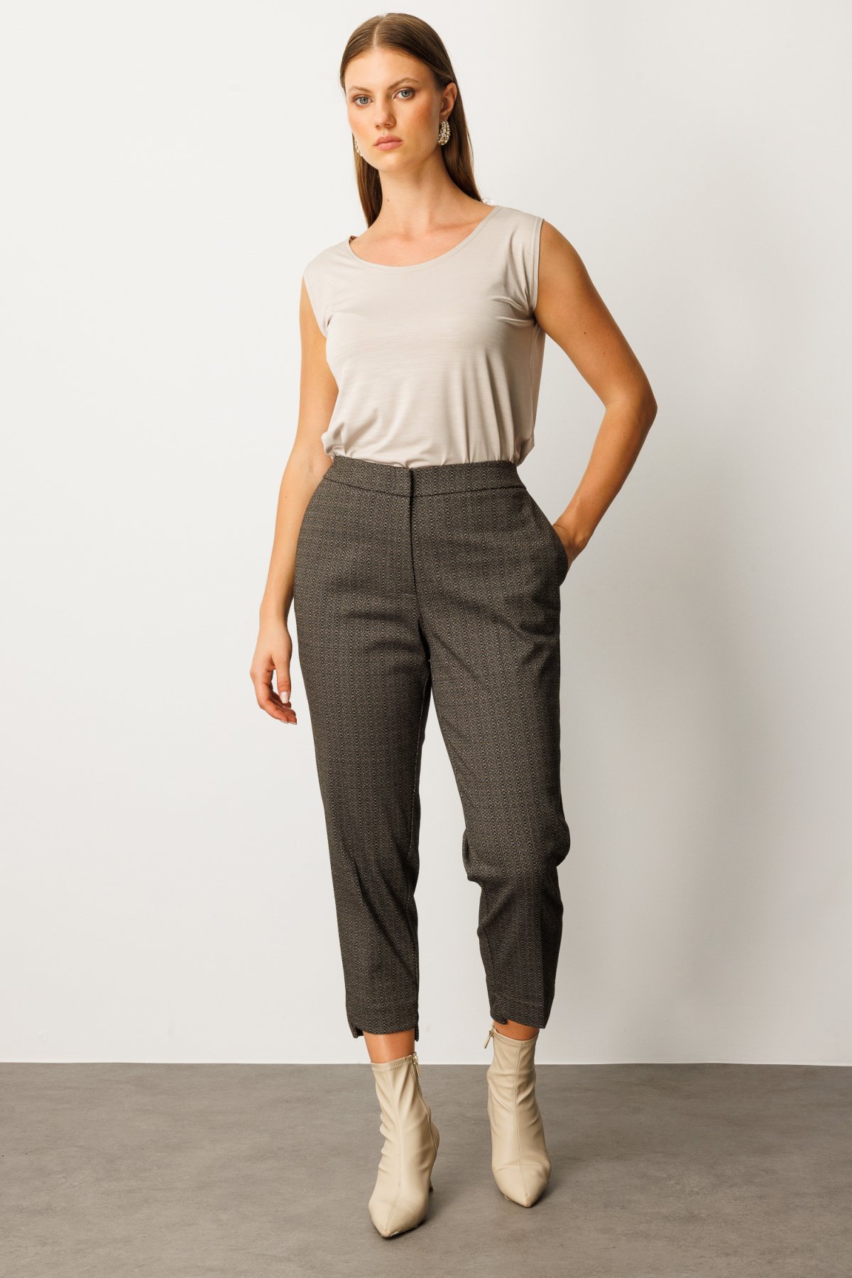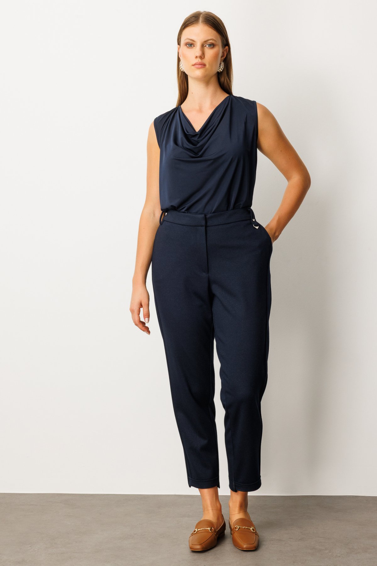 EKOL Paçası Taşlı Dantelli Pantolon 1091 Siyah