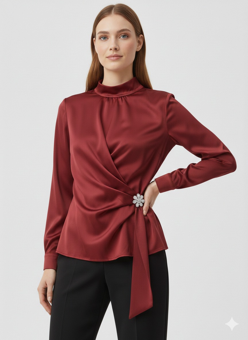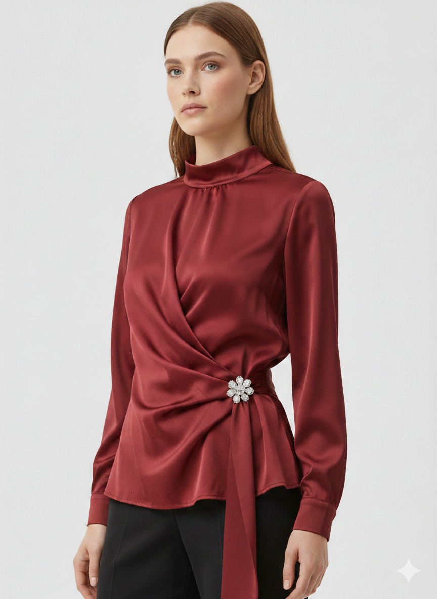 KAYRA Önü Tokalı Gömlek 10025 Vişne
