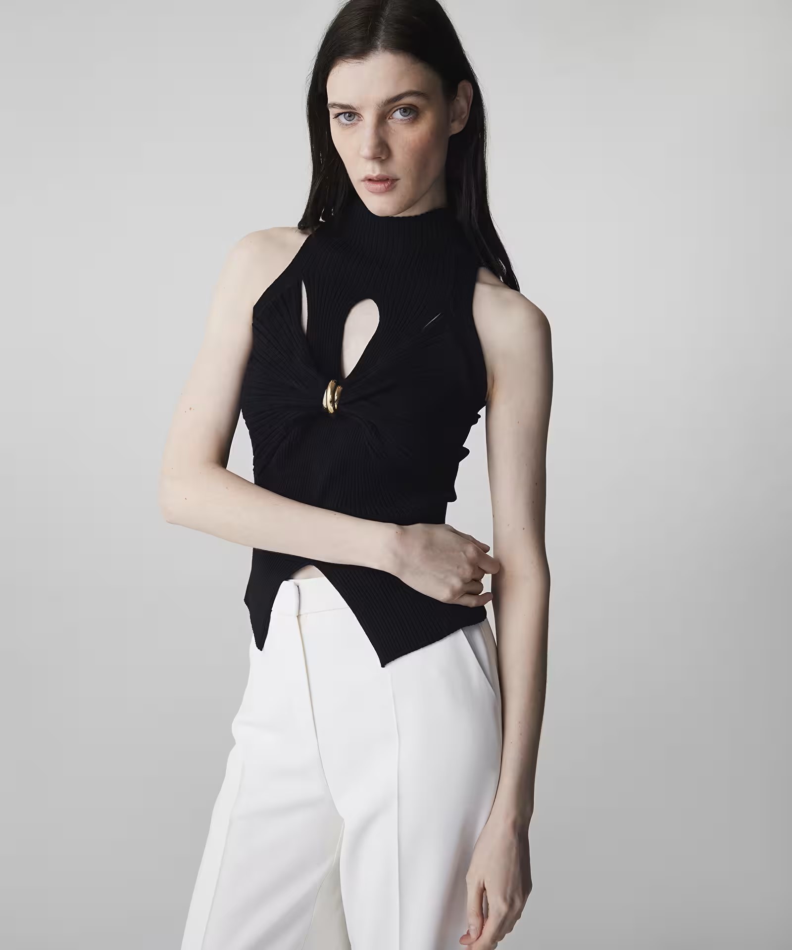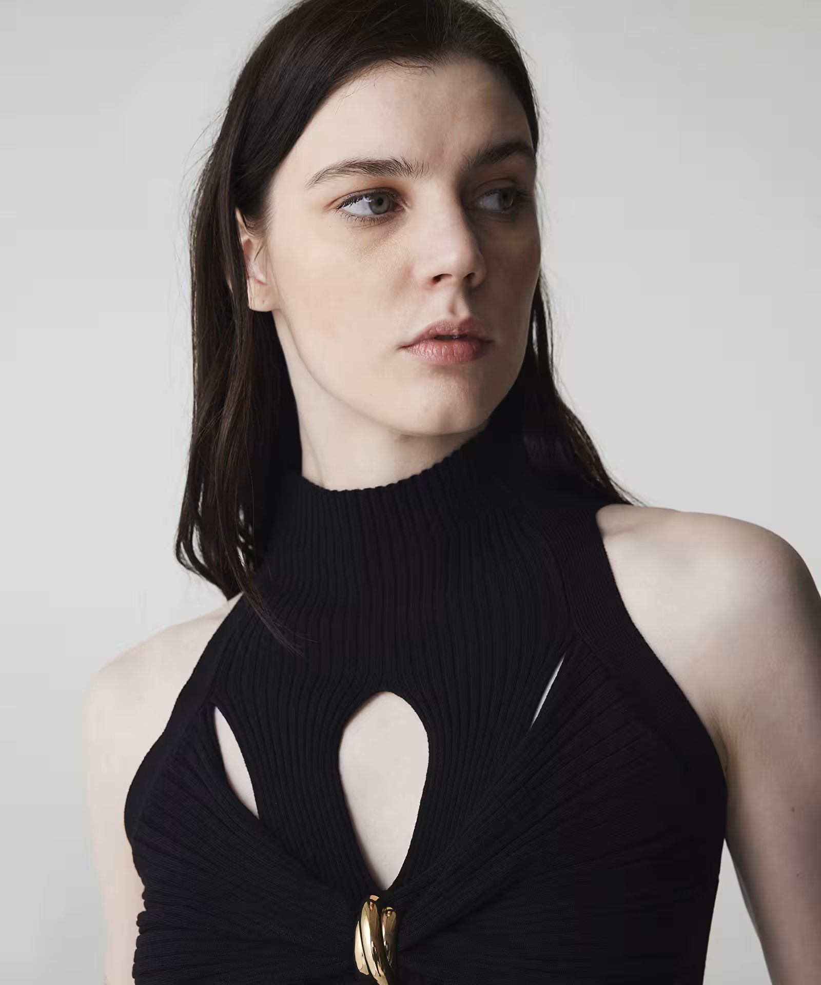 İPEKYOL Metal aksesuarlı cutout triko IS1260050033 Siyah