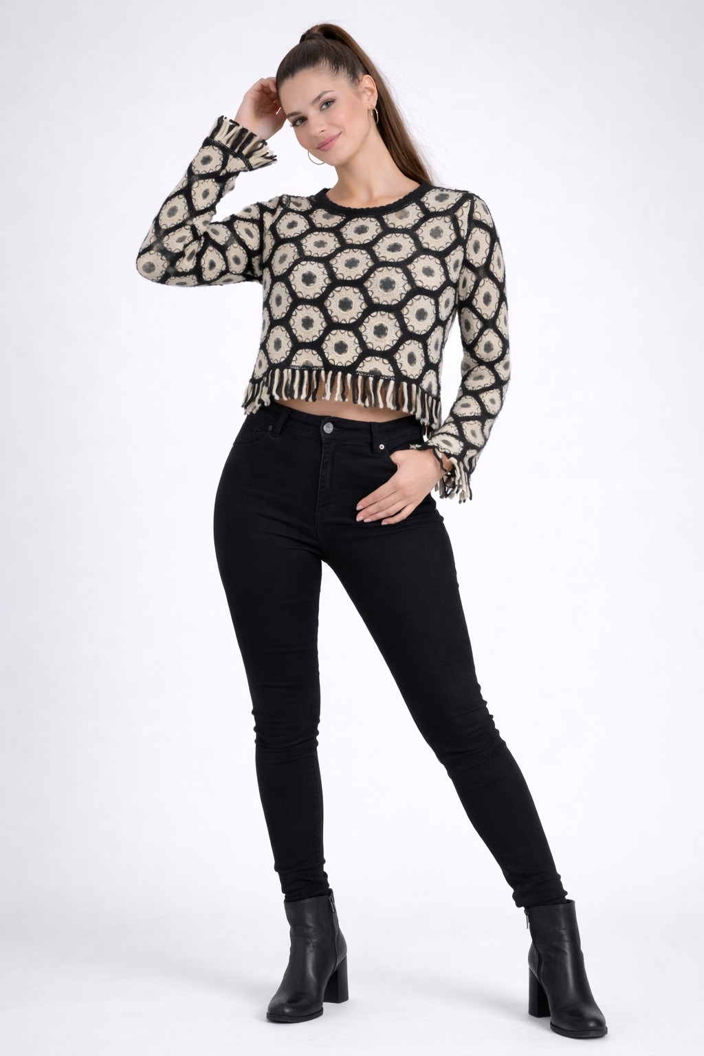 ON TRİKO Örgü Desenli Bluz 70496 Siyah
