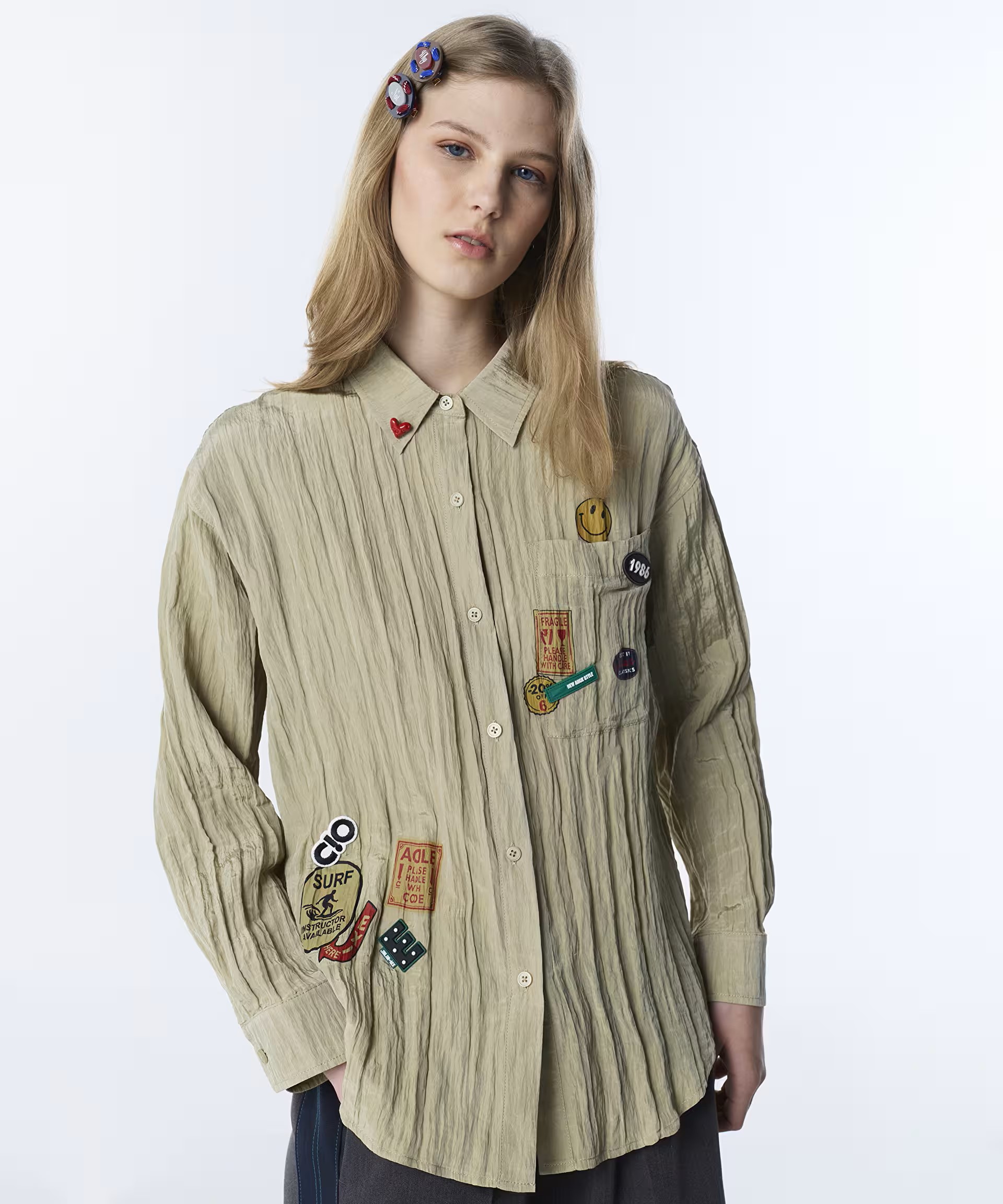 TWIST Kırışık Efektli Gömlek TS1260025143 Ekru
