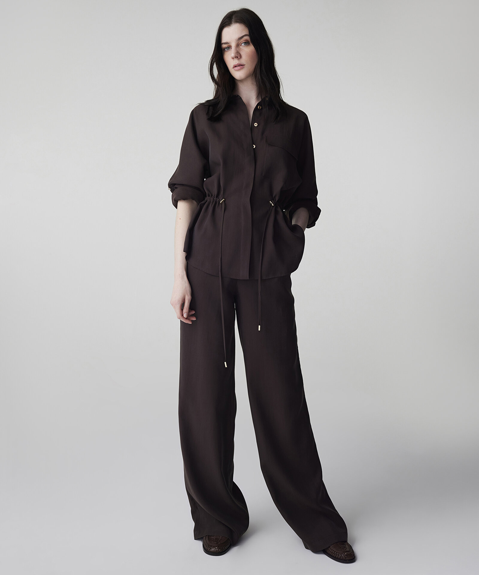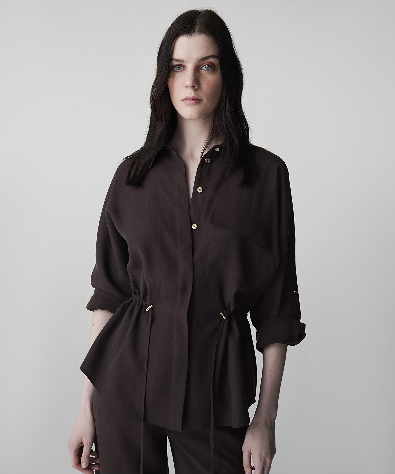 İPEKYOL Ayarlanabilir Bel Gömlek Ceket IS1260005084 Kahve