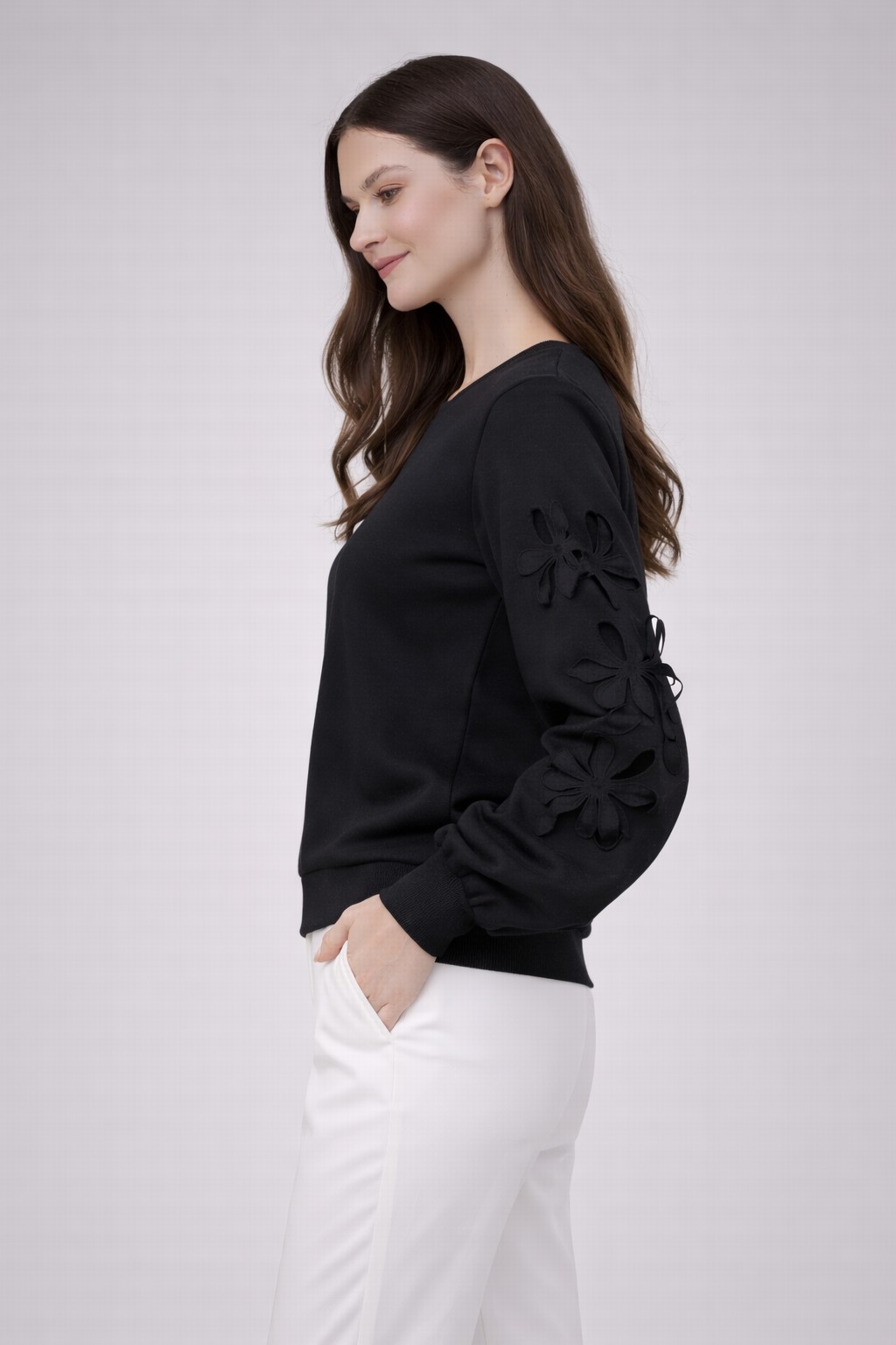 ON TRİKO Çiçek Detaylı Sweat 70351 Siyah