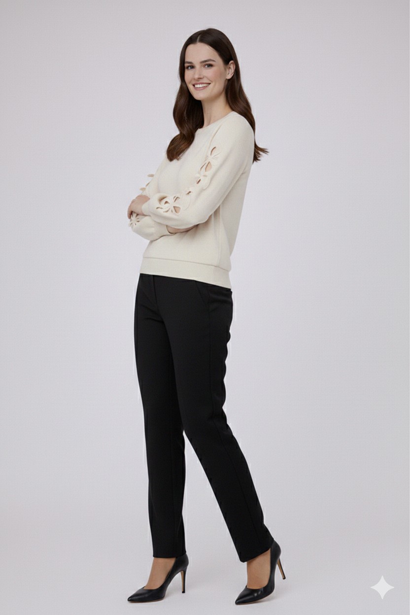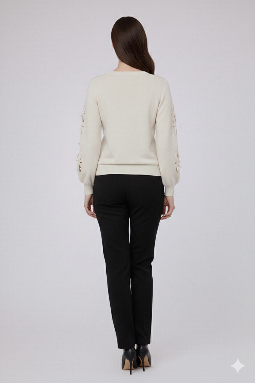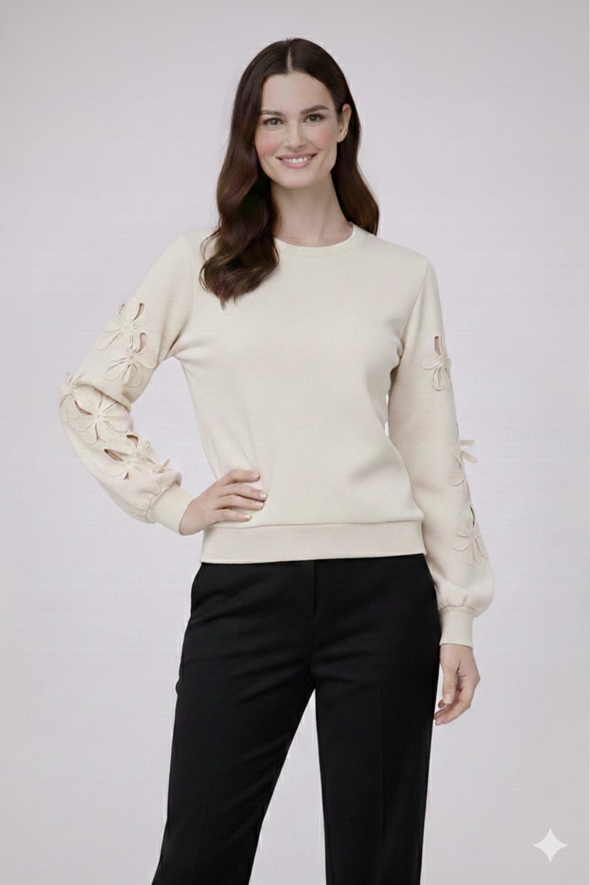 ON TRİKO Çiçek Detaylı Sweat 70351 Ekru