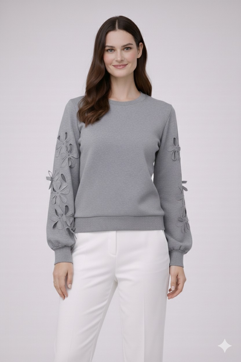 ON TRİKO Çiçek Detaylı Sweat 70351 Gri