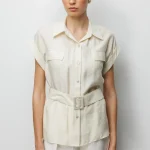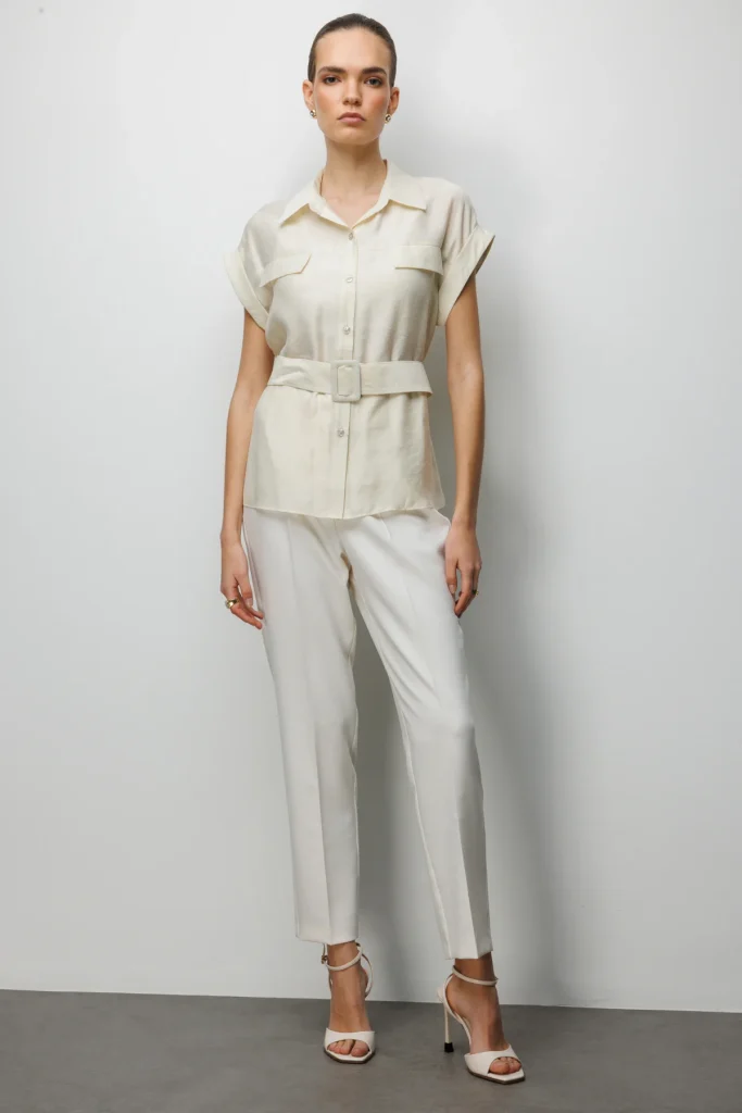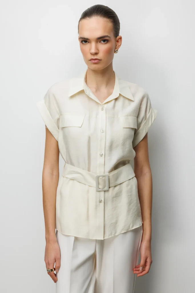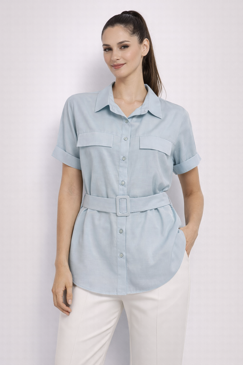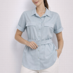EKOL Beli Kemerli Bluz 2086 Mavi