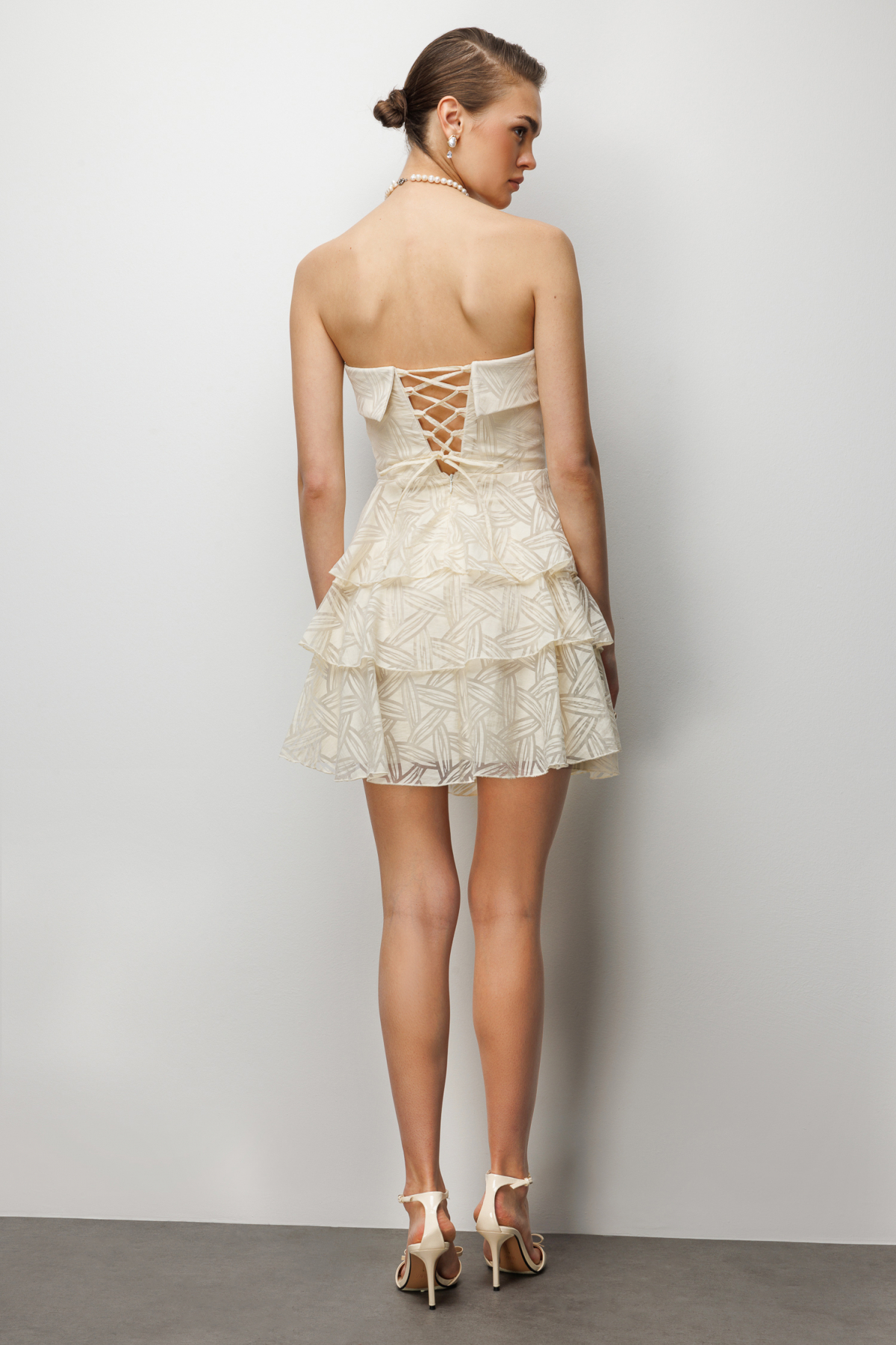 Manken Ölçüleri: 1.76 cm 84/61/89 – Manken en küçük bedeni giymektedir.