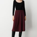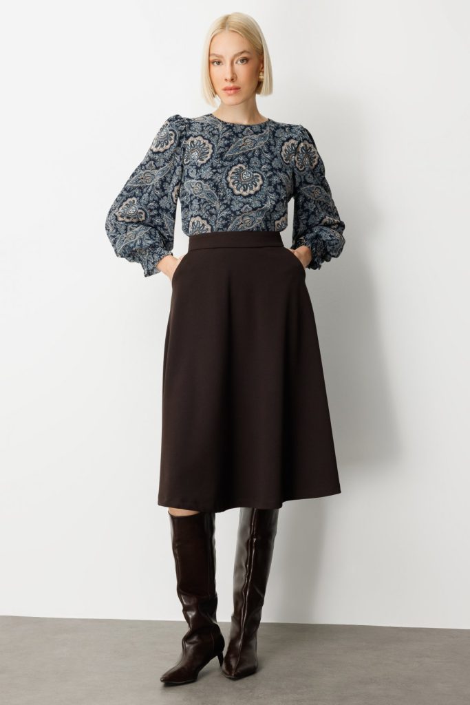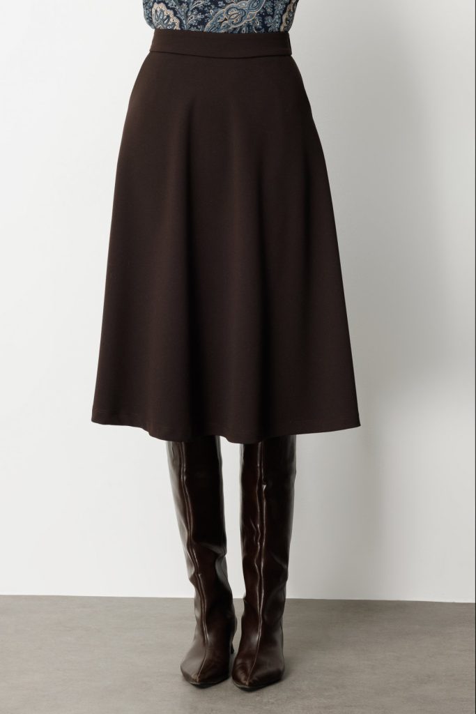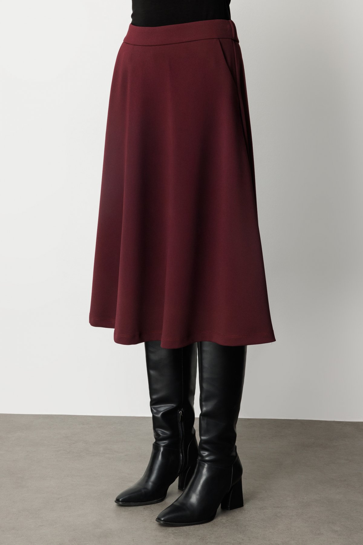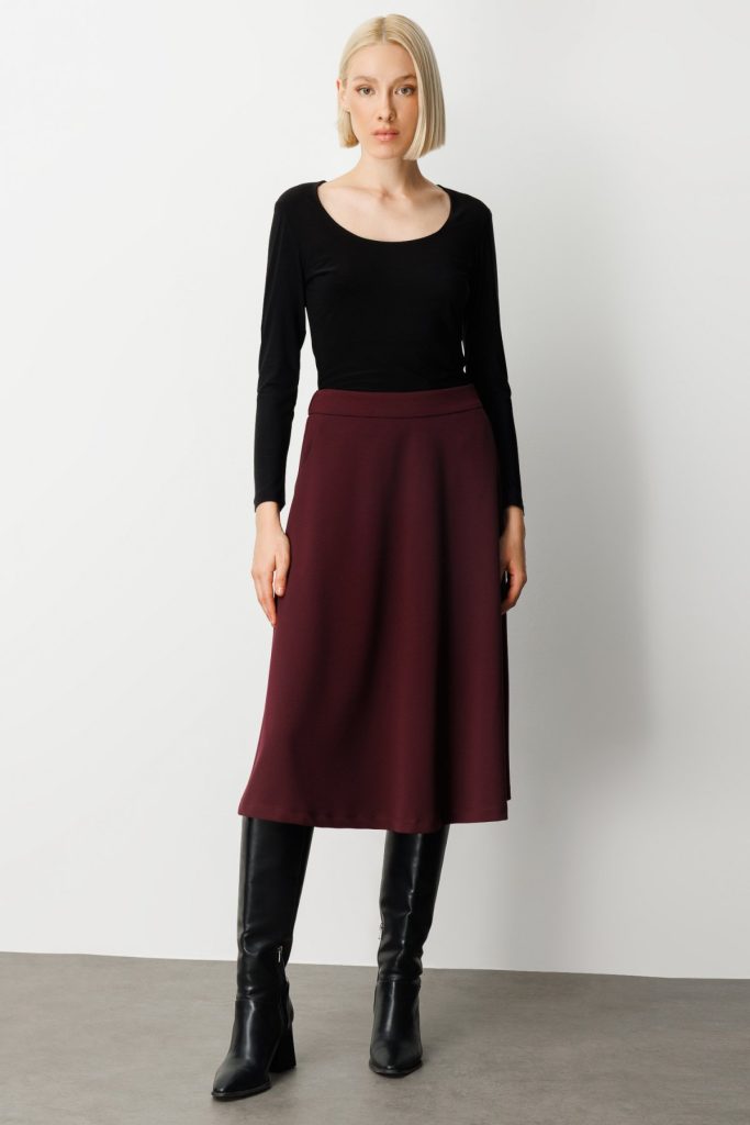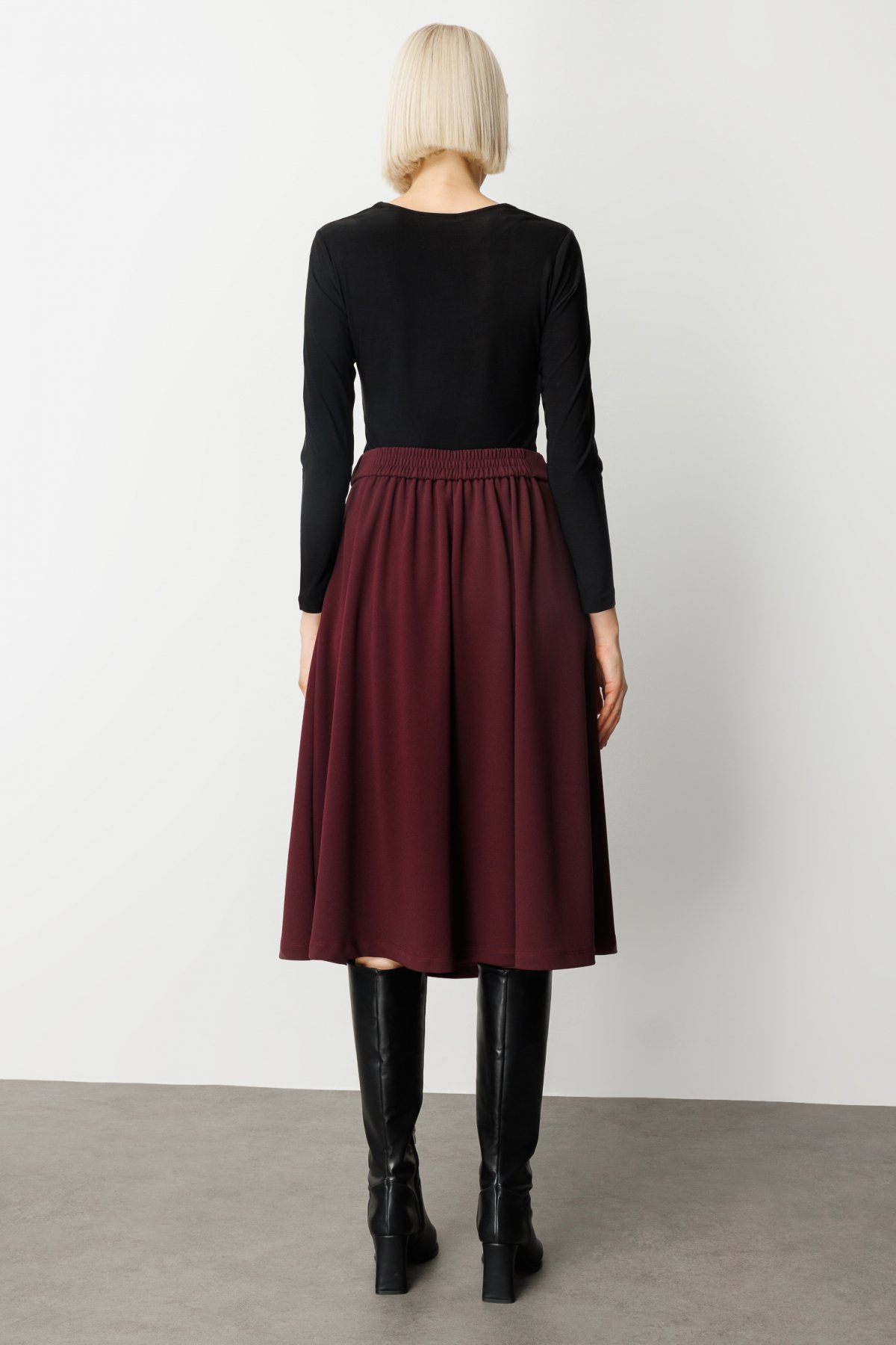 EKOL Beli Lastikli Volanlı Midi Etek 2023 Bordo