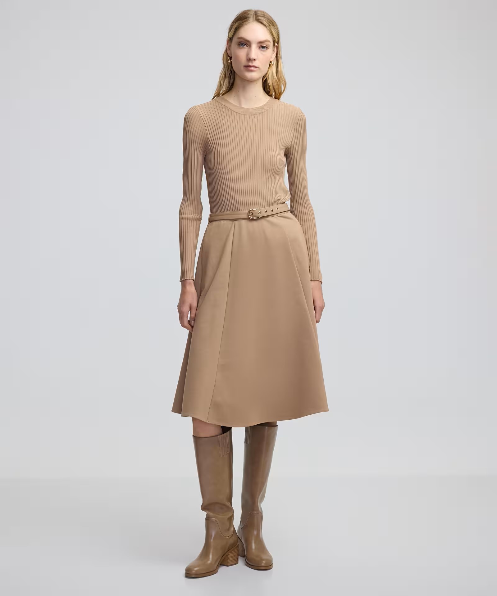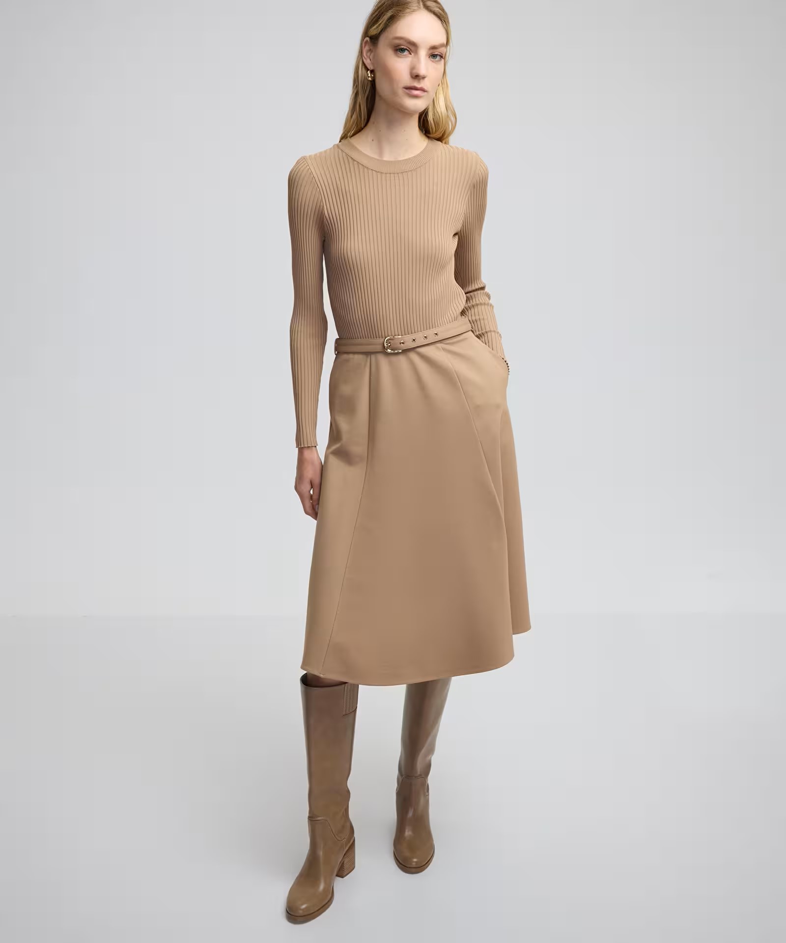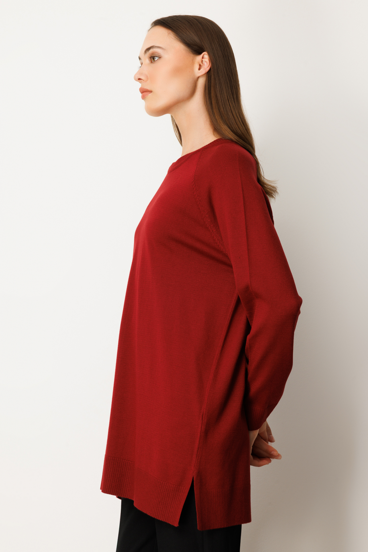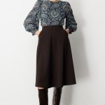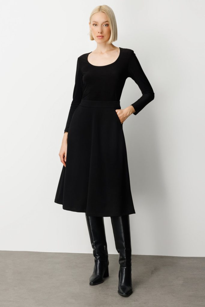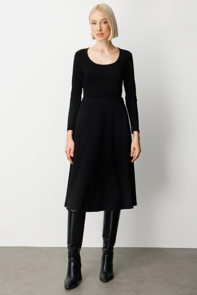 EKOL Beli Lastikli Volanlı Midi Etek 2023 Bordo