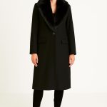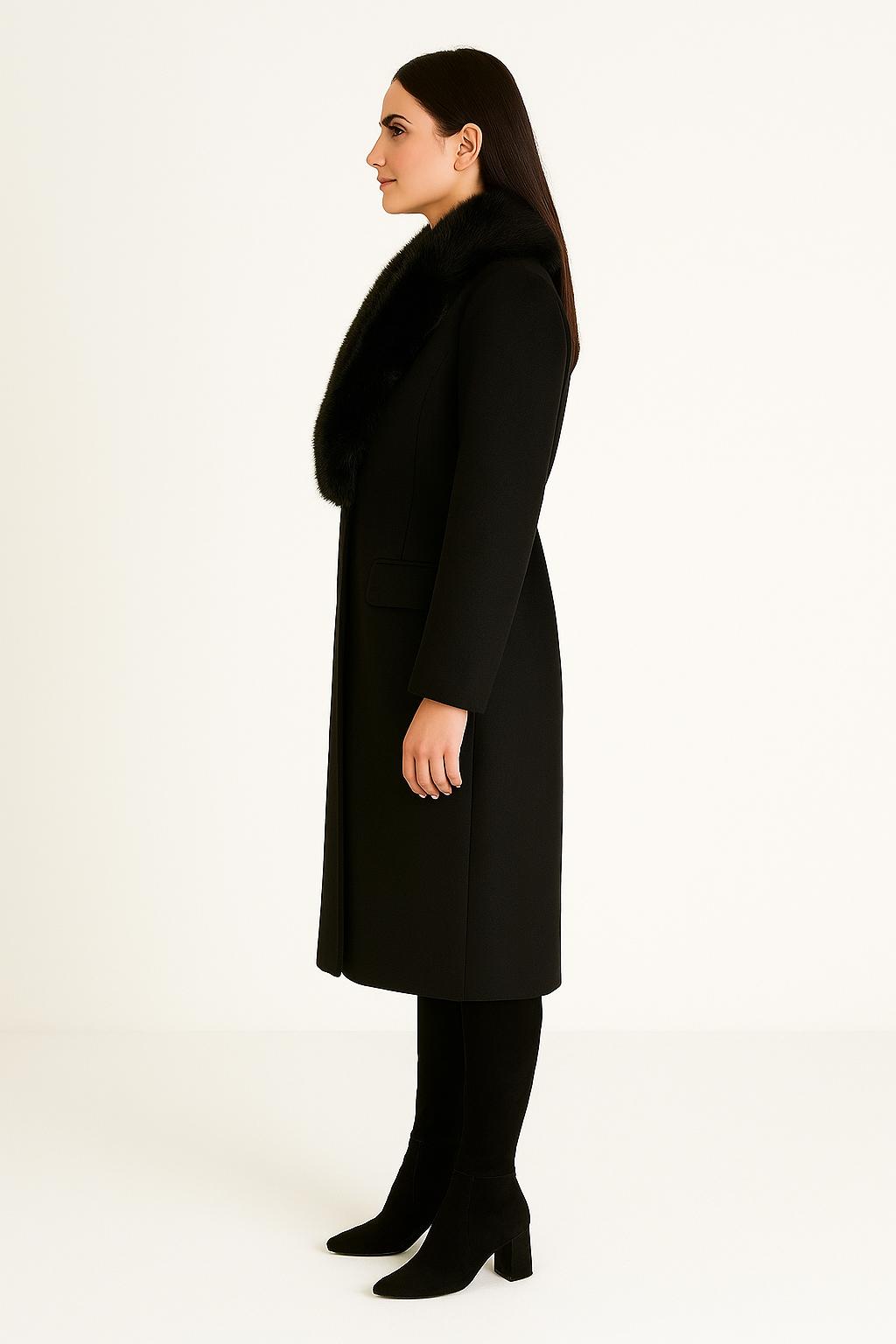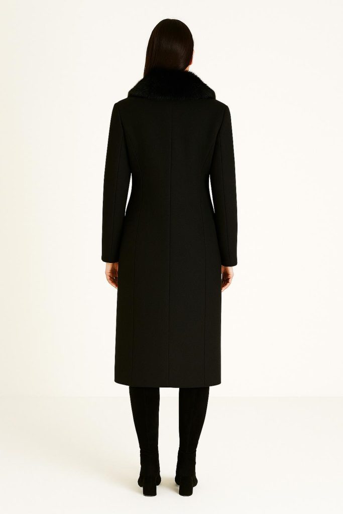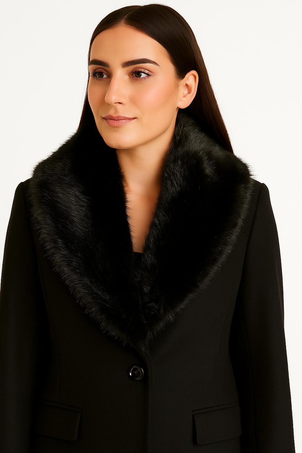 EKOL Yakası Kürk Detaylı Kaşe Kaban 6065 Siyah
