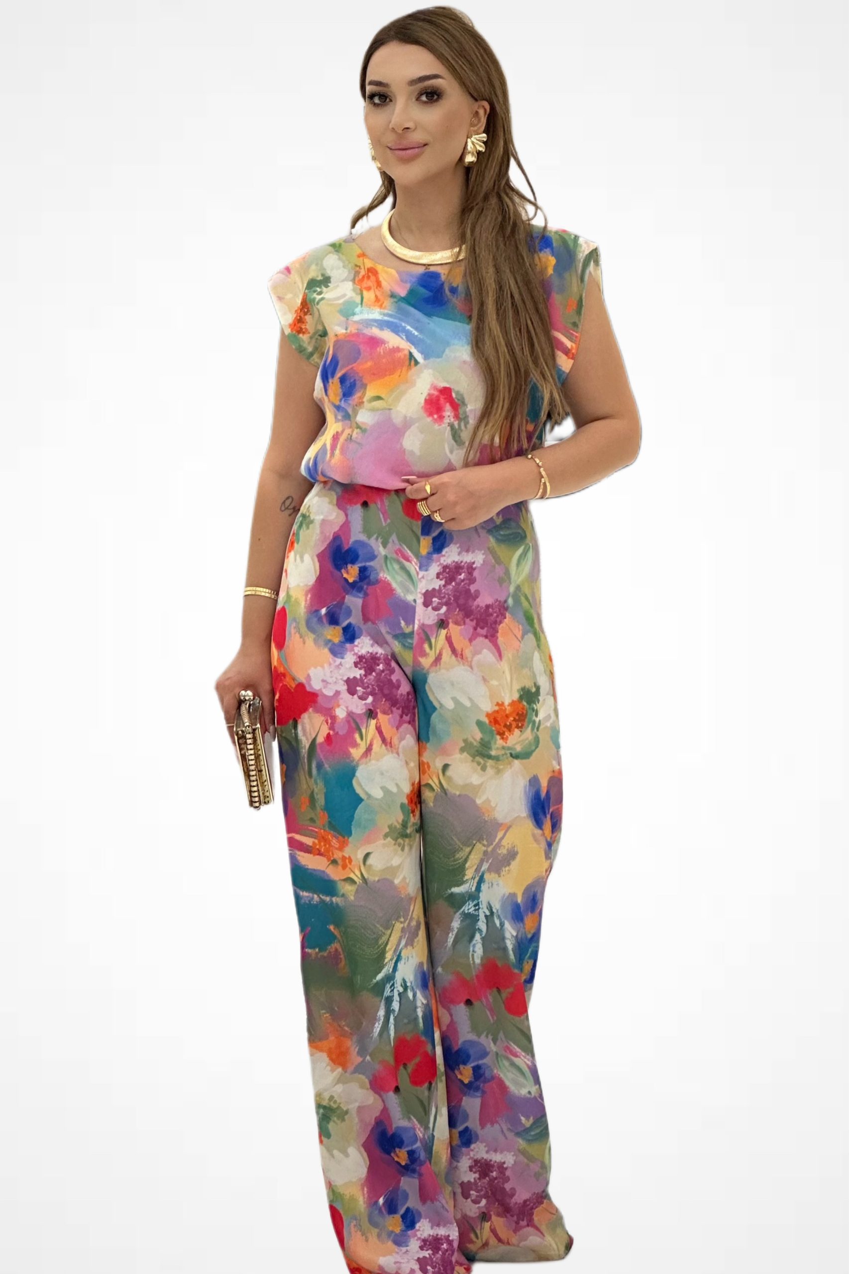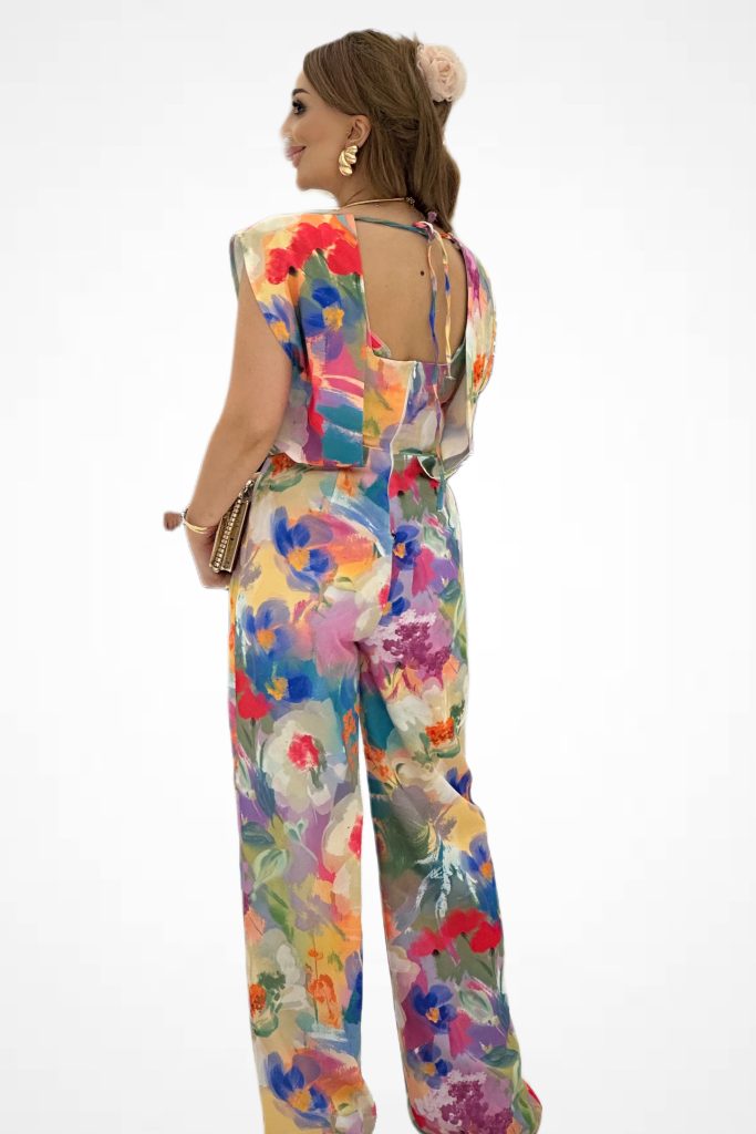 - Sırt Dekolteli Çiçekli tulum