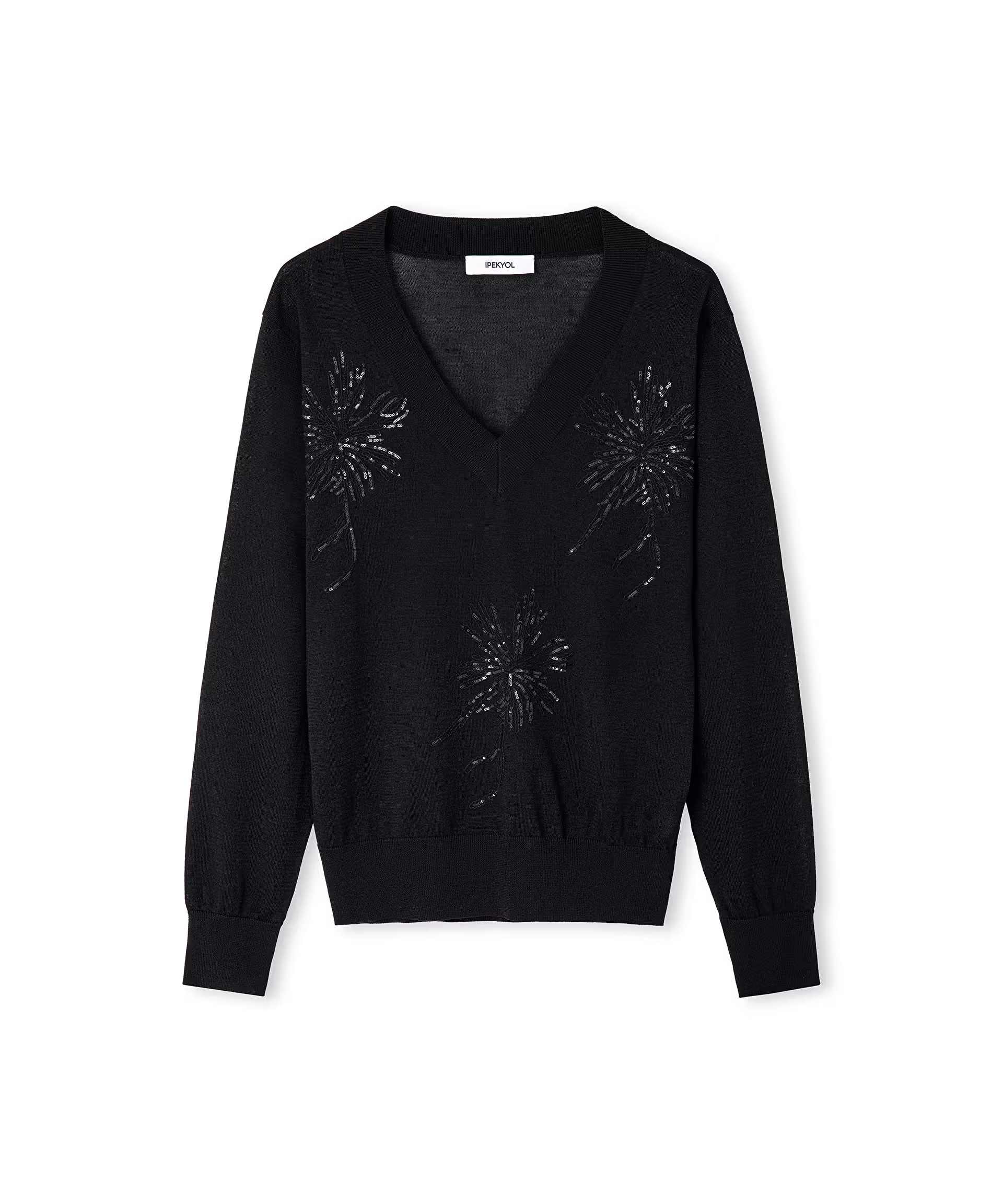 İPEKYOL Çiçek Motifli Triko IS1260050072 Siyah
