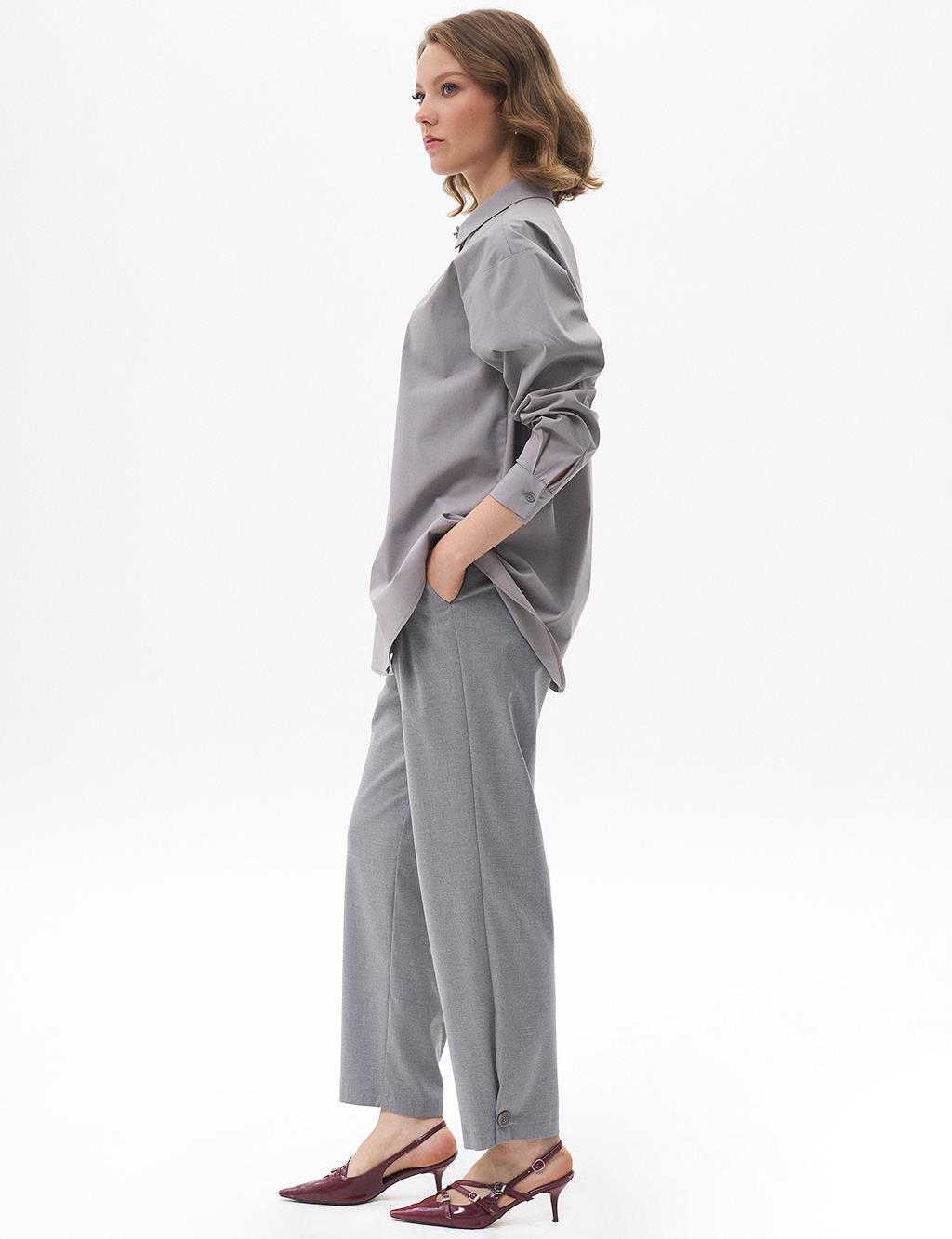 KAYRA Düğmeli Poplin Gömlek 11503 Gri