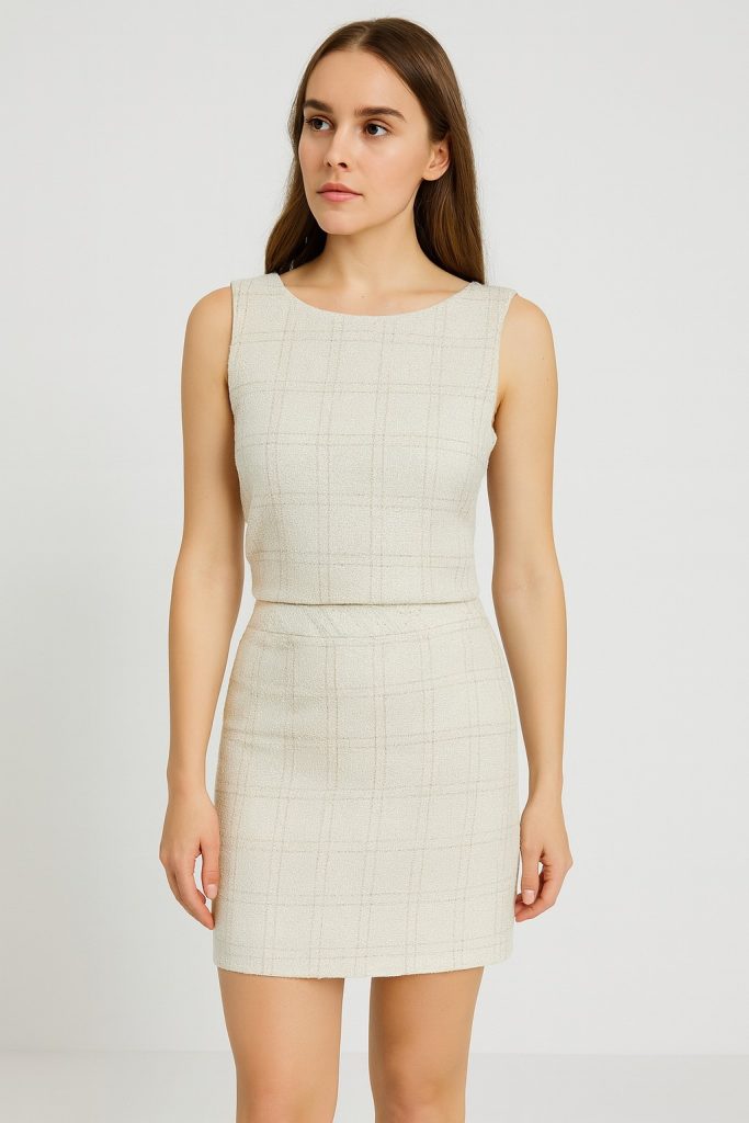 MEZZURA Kendinden Desenli Triko Etek 1504 Ekru