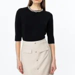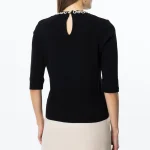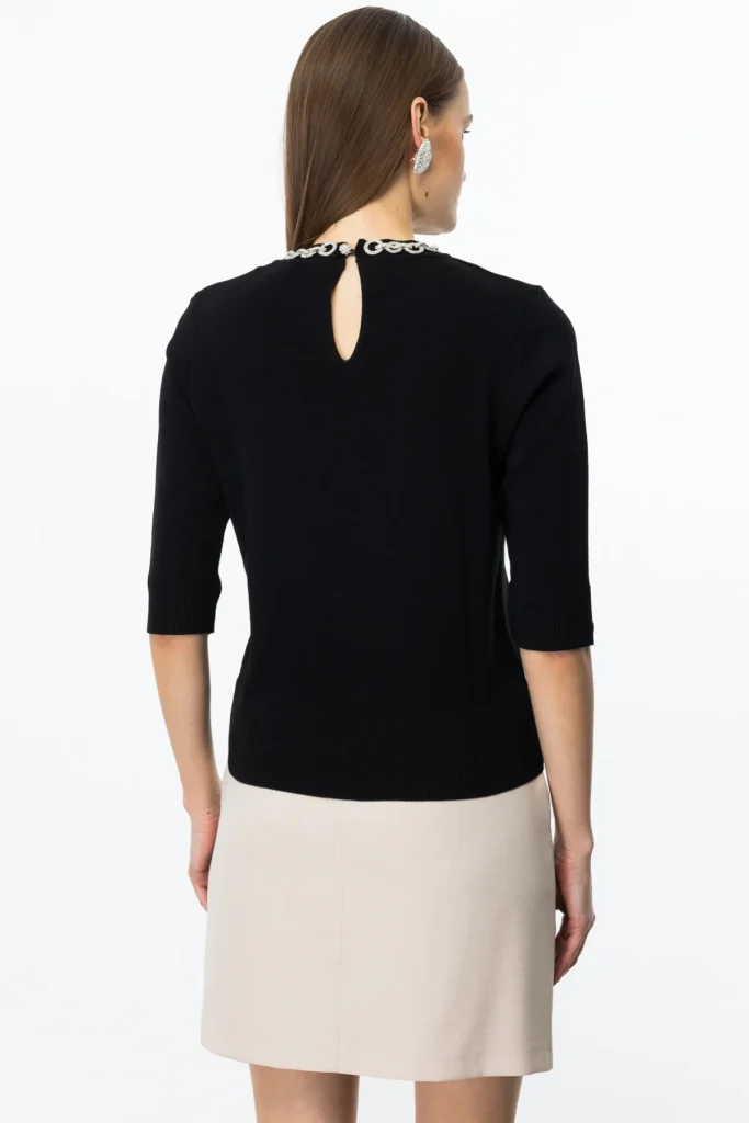 Ürün Özellikleri: Sıfır yaka, yarım kollu, yakası taşlı, arka kısmı düğme kapamalı, triko kumaşlı