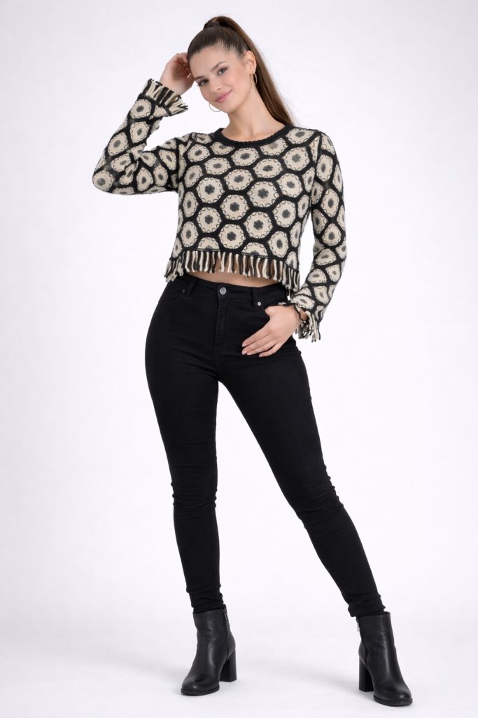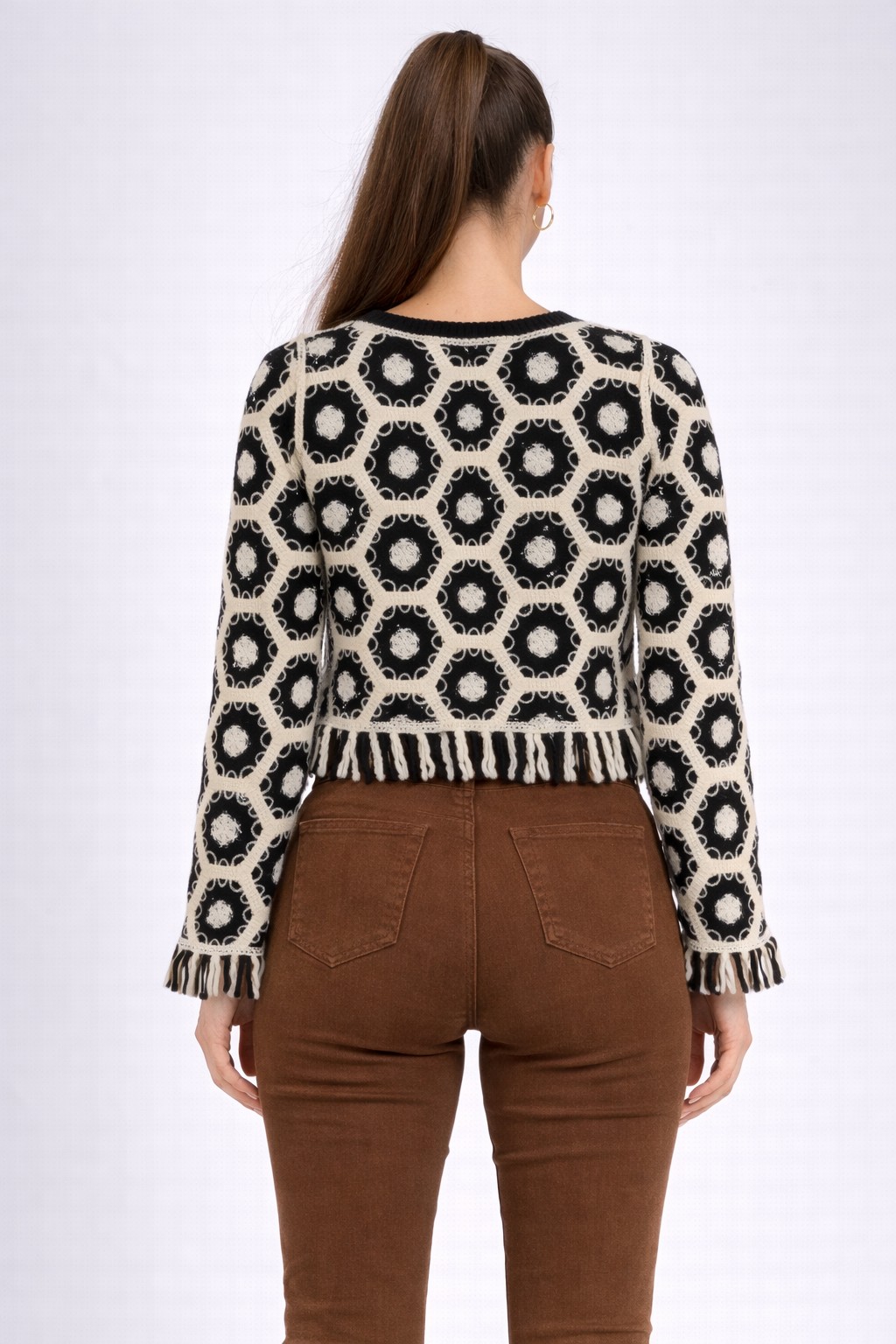 Kol ve Bel Saçak Detaylı Örgü Kazak