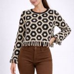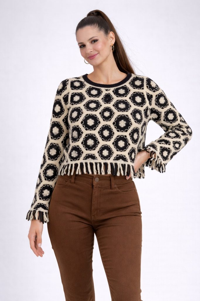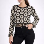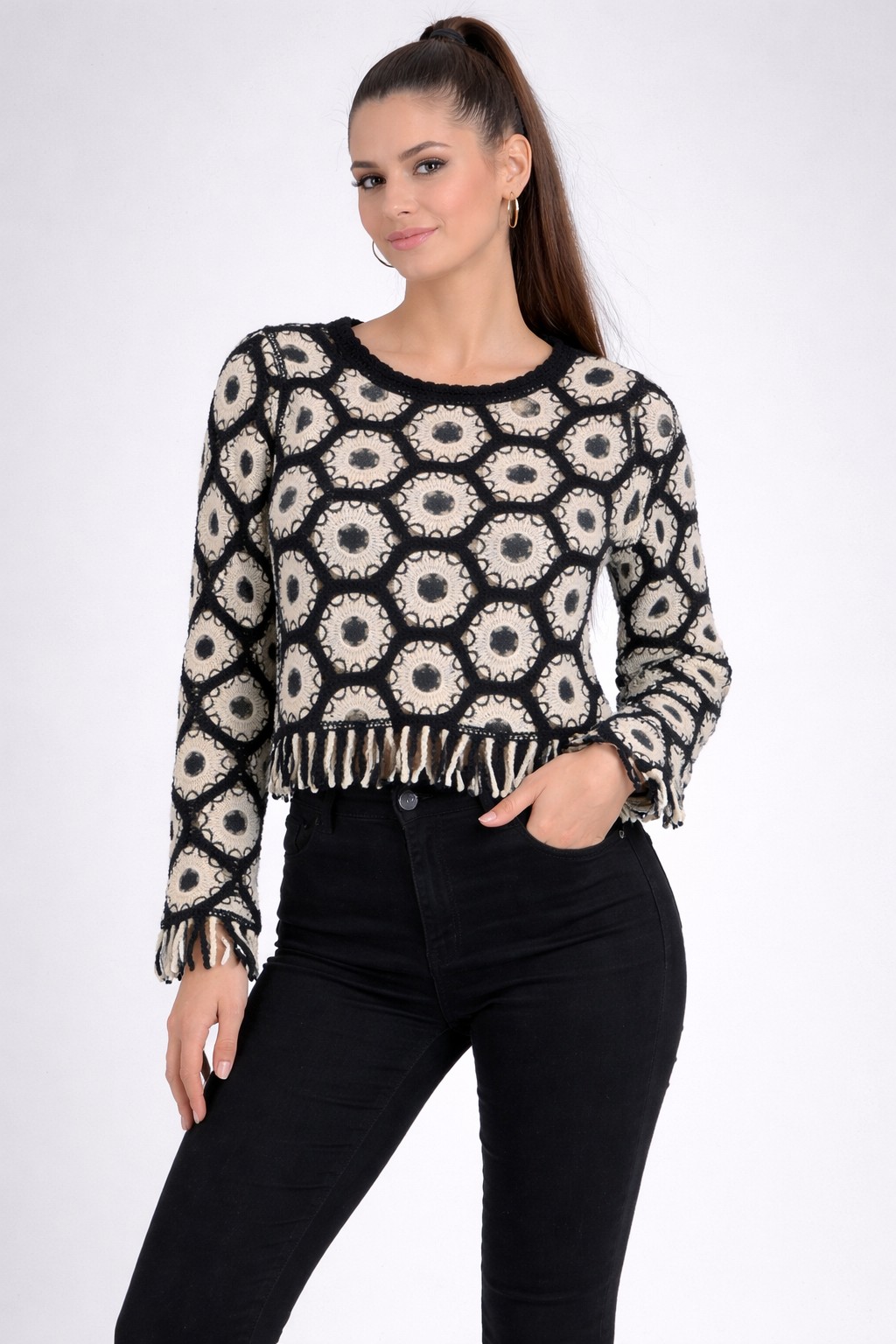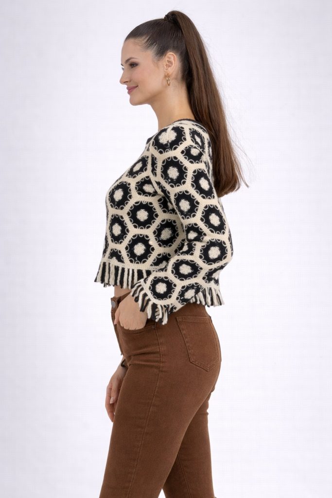 Kol ve Bel Saçak Detaylı Örgü Kazak
