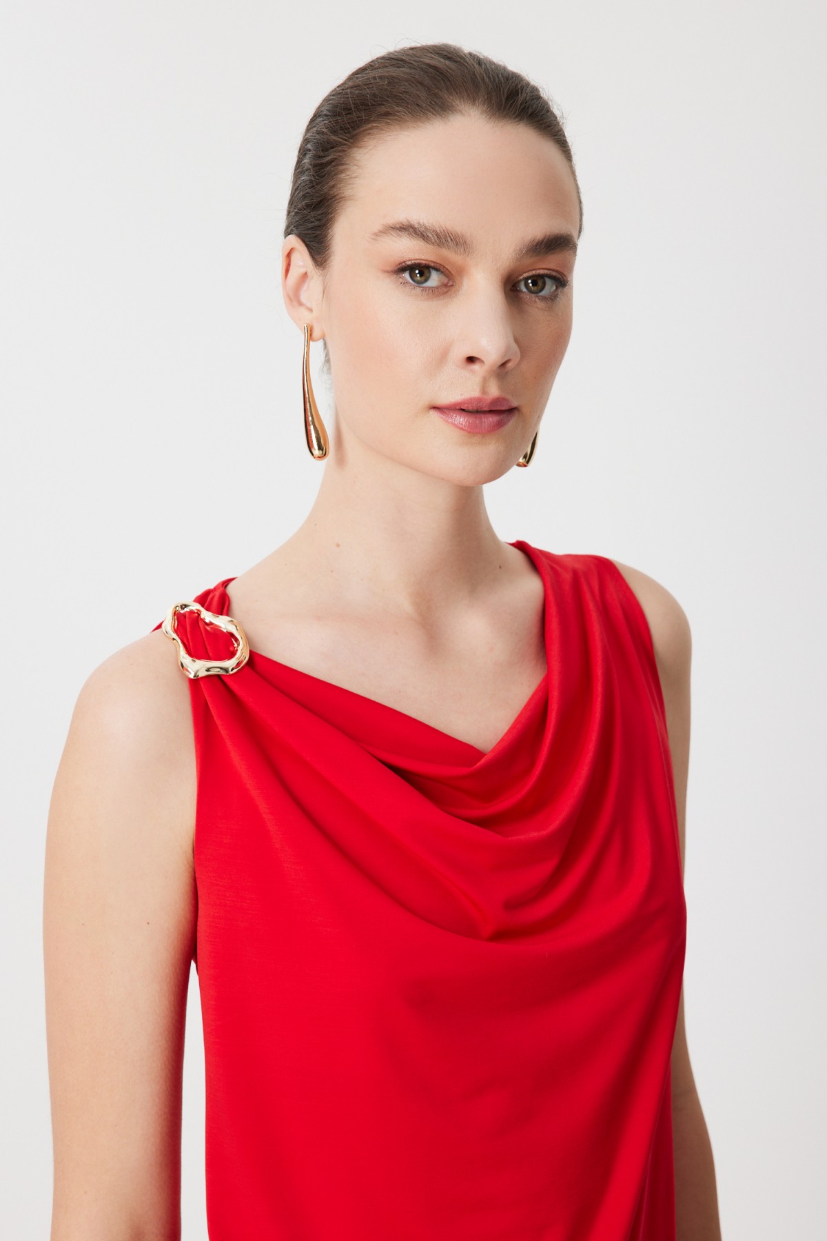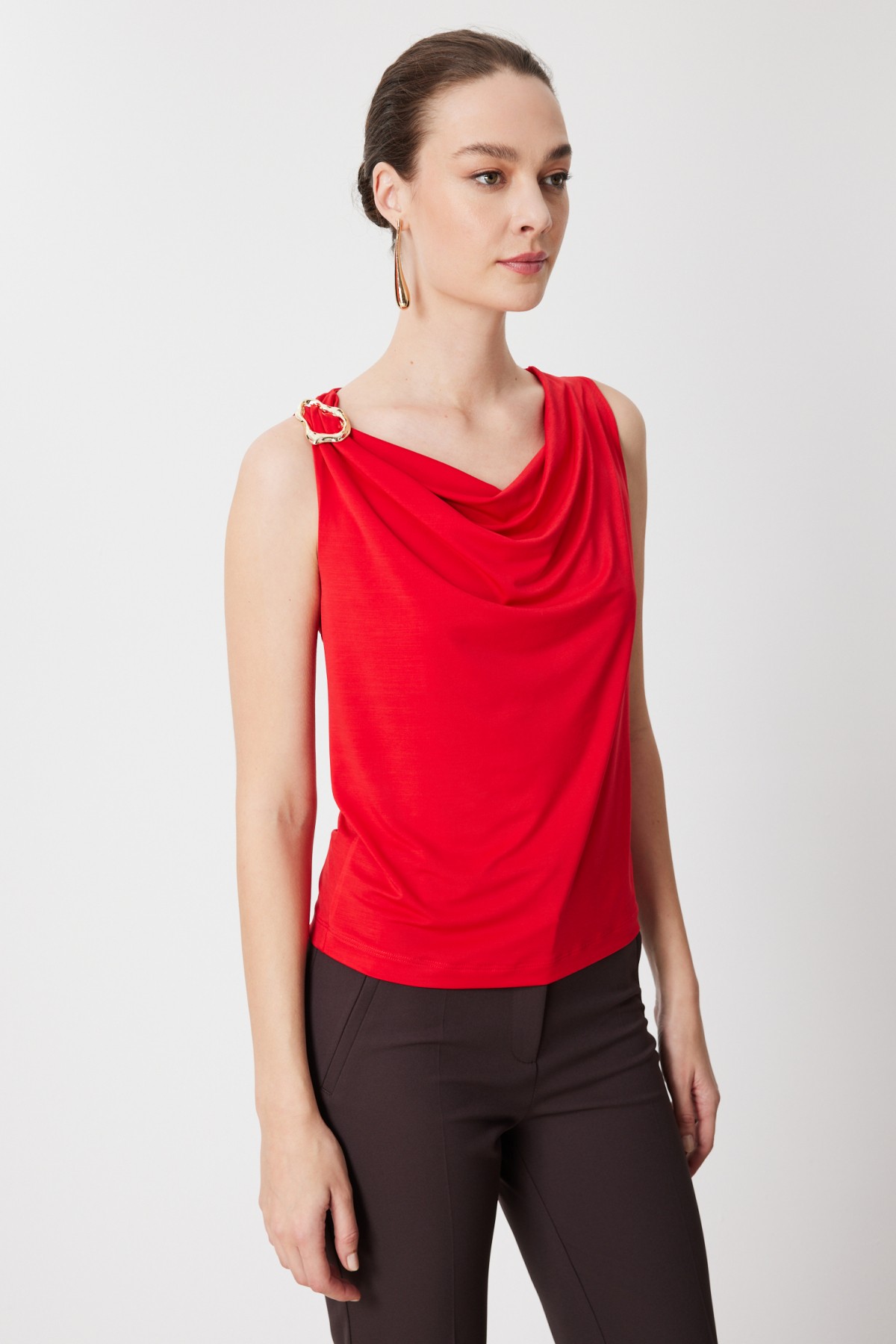 ON TRİKO Tek Omzu Aksesuarlı Degaje Yaka Bluz 71395 Kırmızı