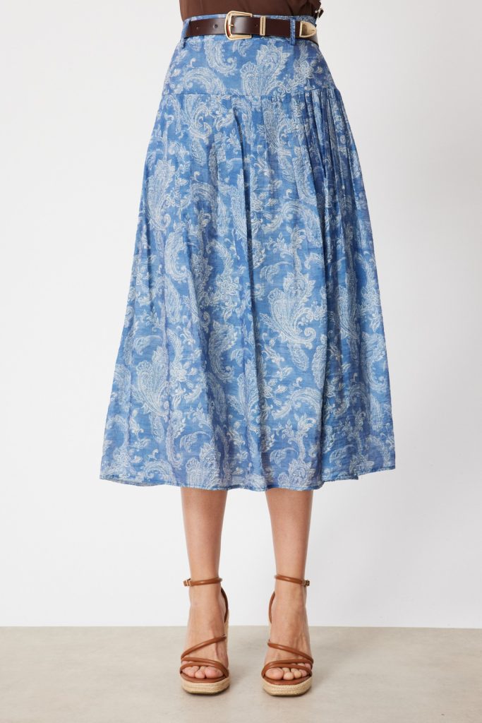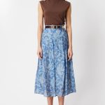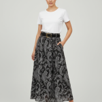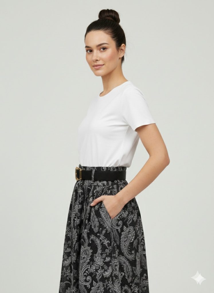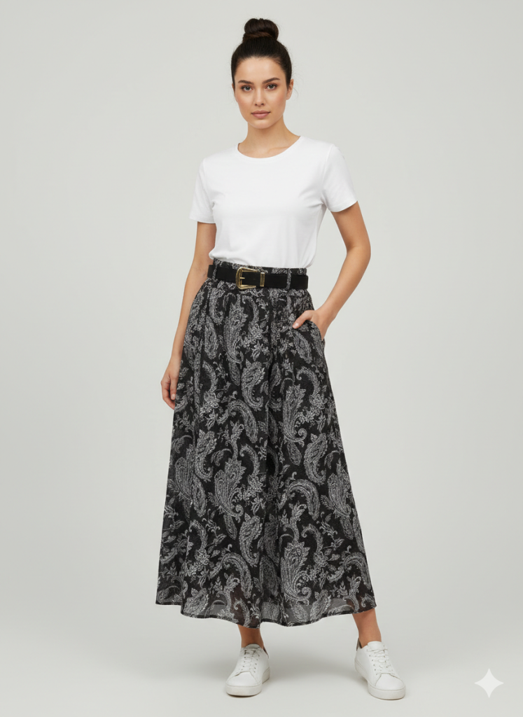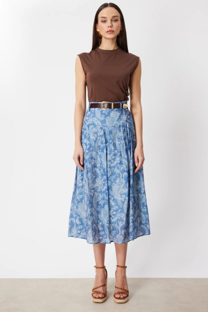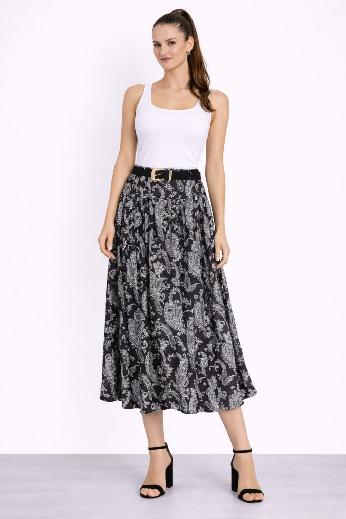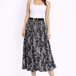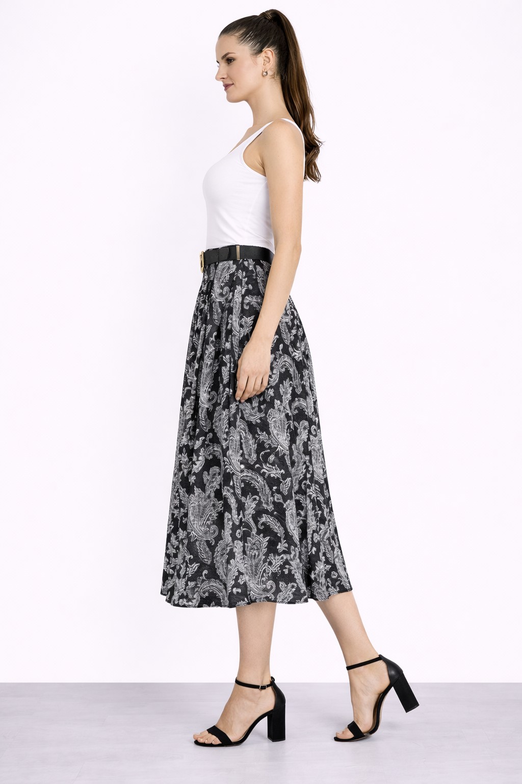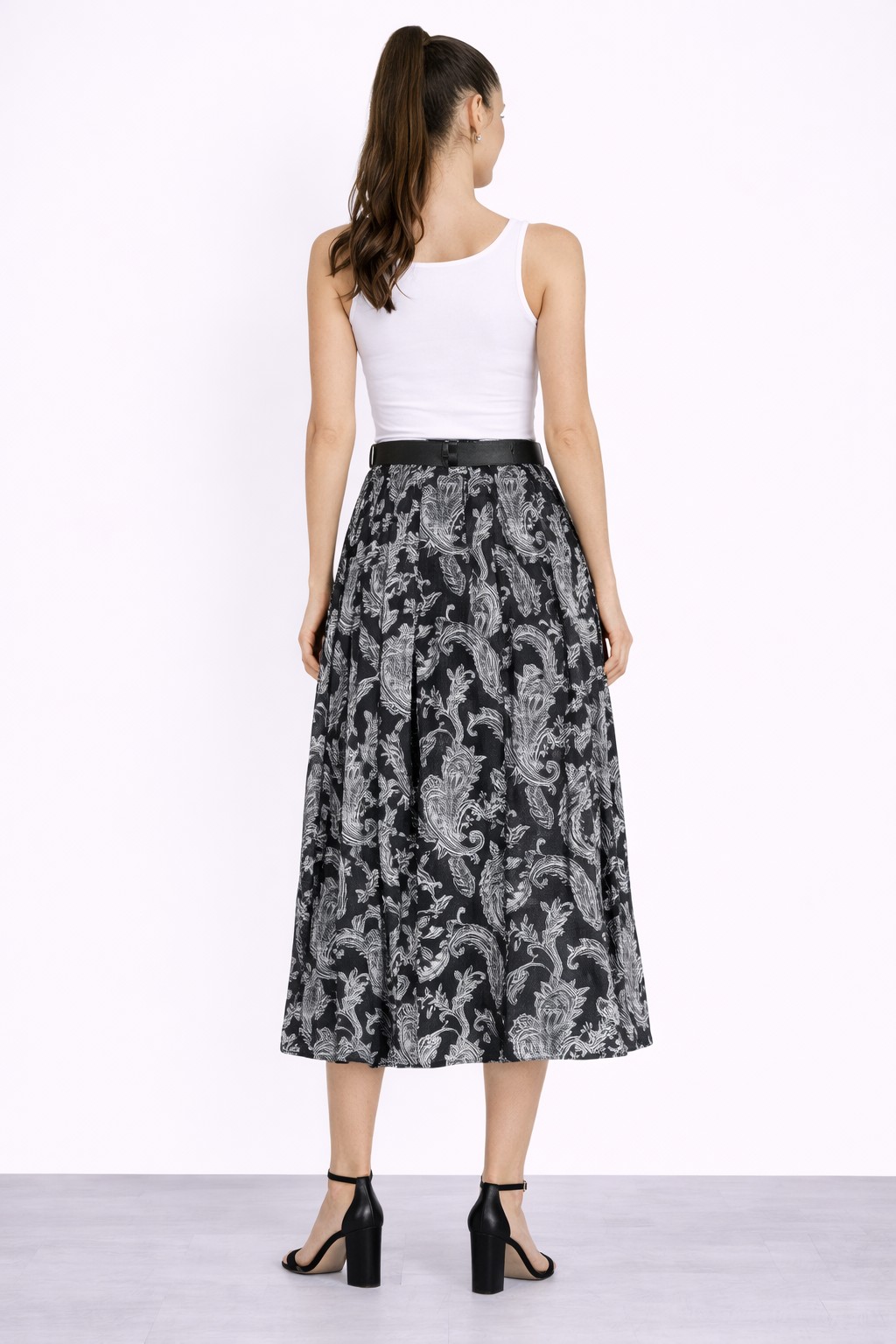 ON TRİKO Beli Kemerli Desenli Midi Etek 74210 Siyah