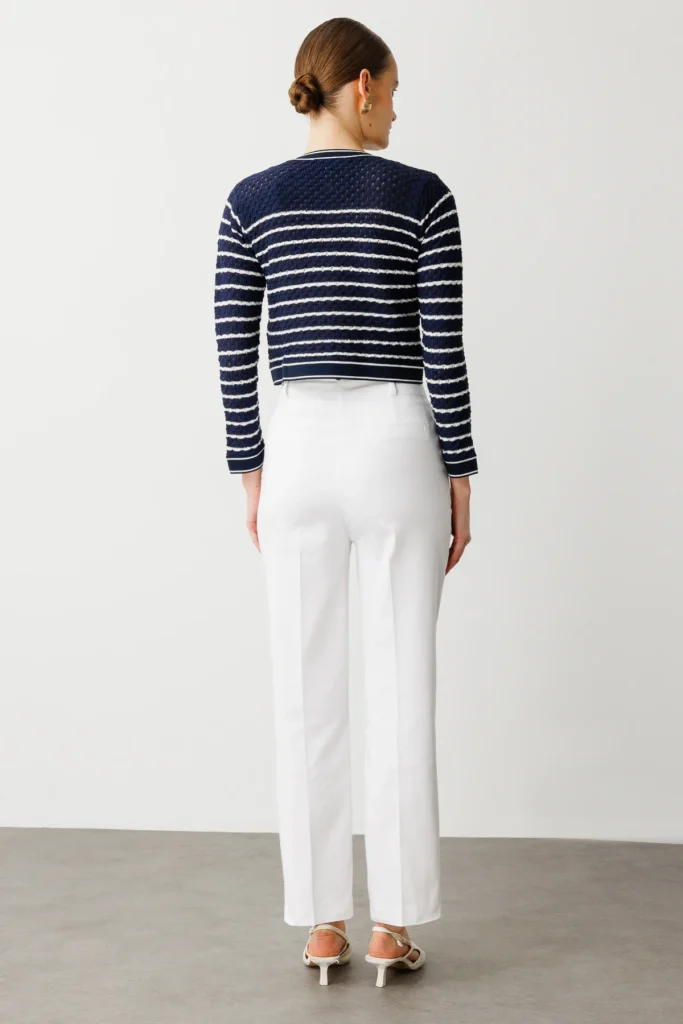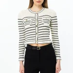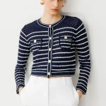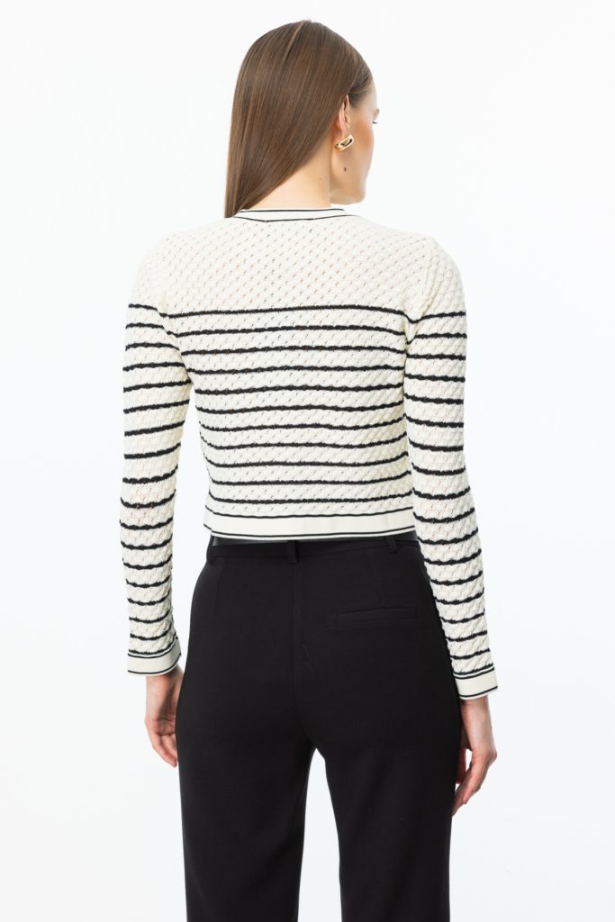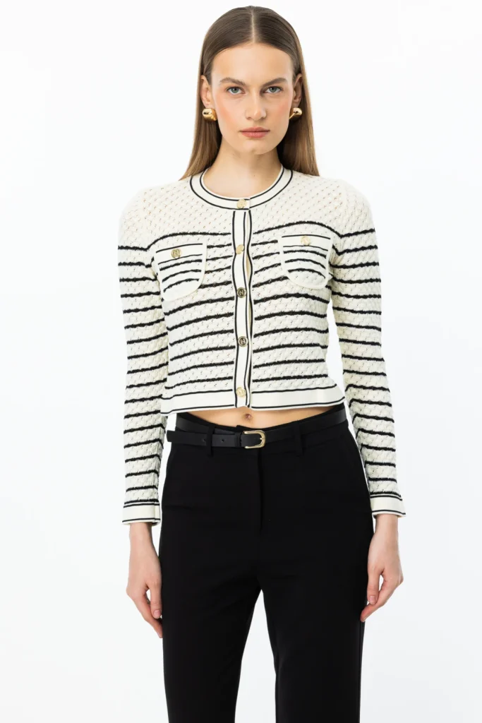 Ürün Özellikleri: Sıfır yaka, çizgili, ribanalı, çıt çıtlı, süs cepli, triko kumaş, kendinden dokulu