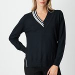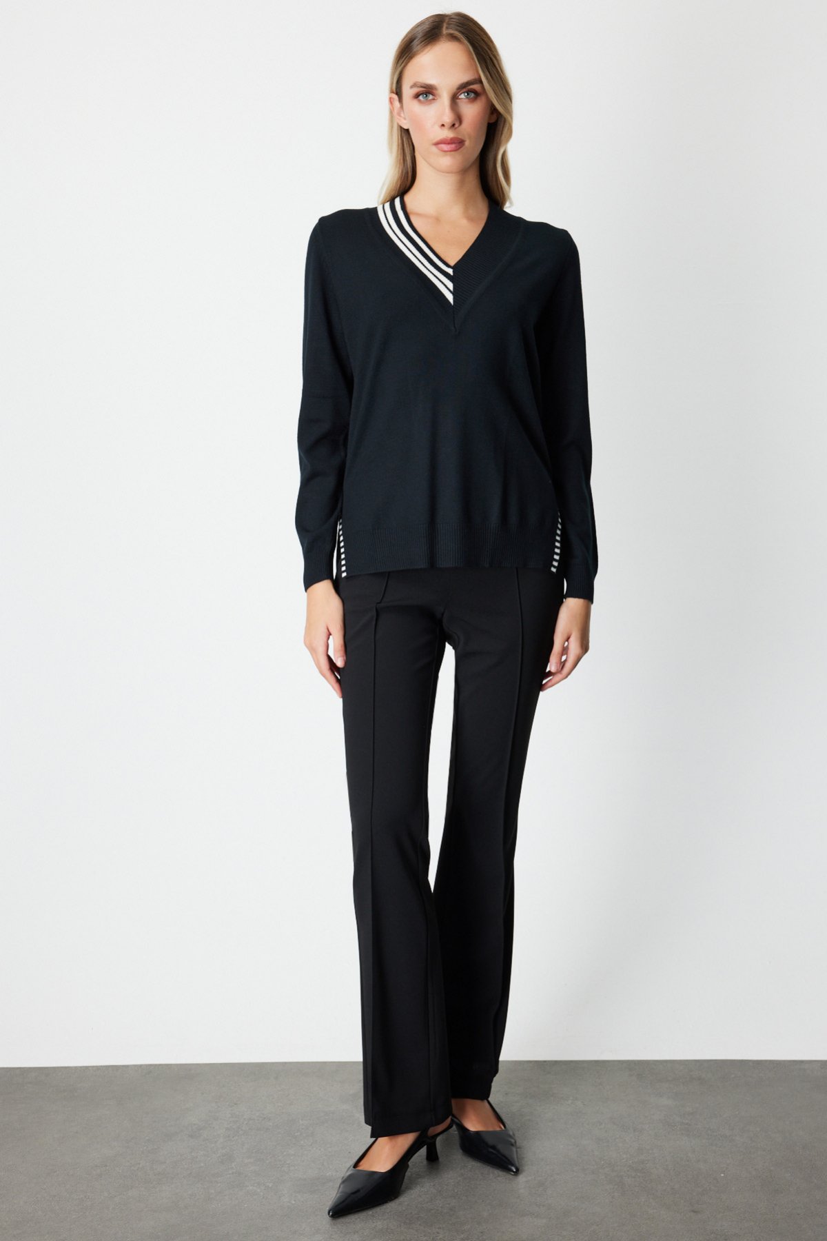 ON TRİKO V Yaka Yakası Ribanalı Kazak 65378 Siyah