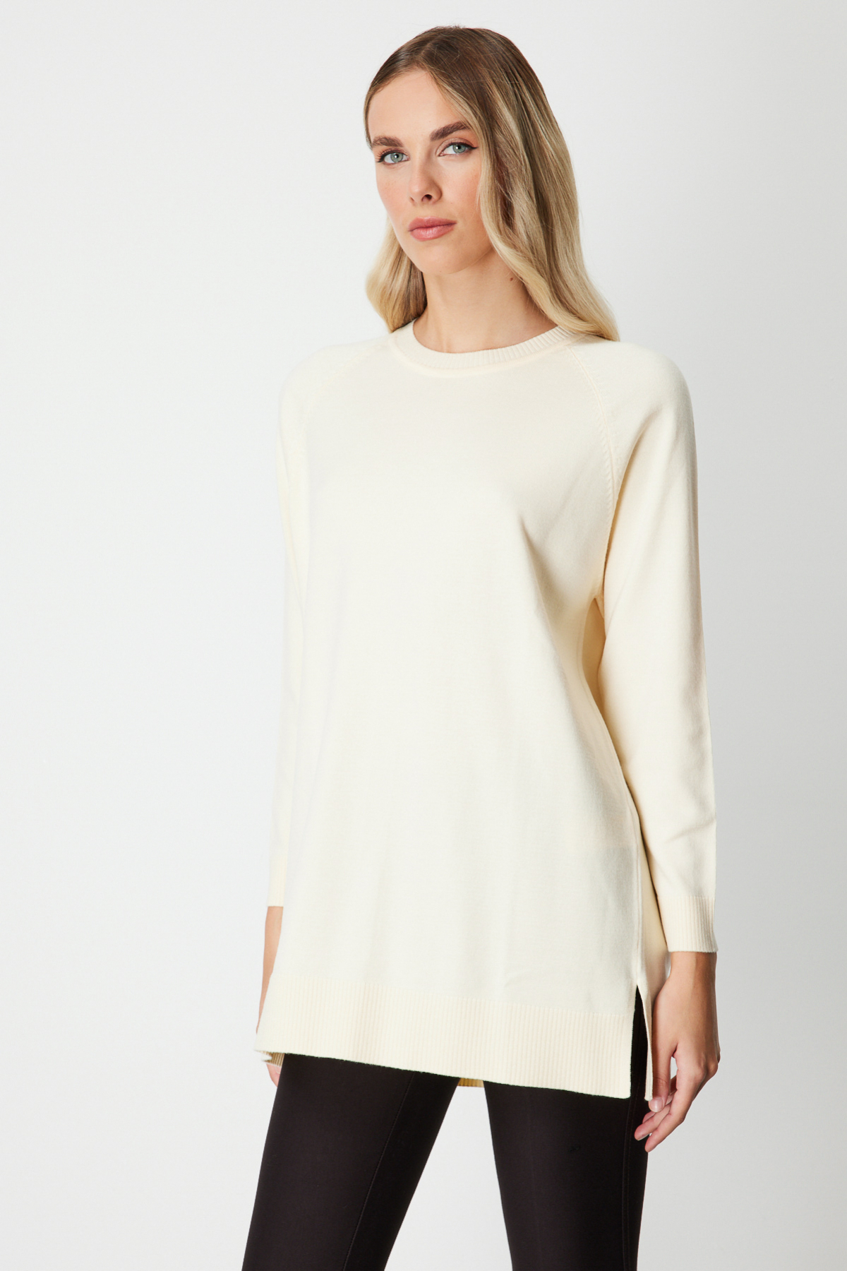 ON TRİKO Arkası Düğmeli Sıfır Yaka Kazak 65413 Krem