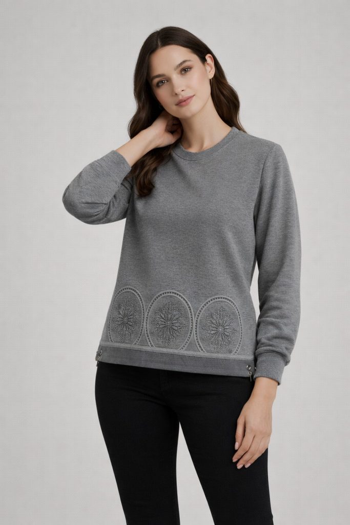 ON TRİKO Kendinden Desenli Sweat 70349 Pudra