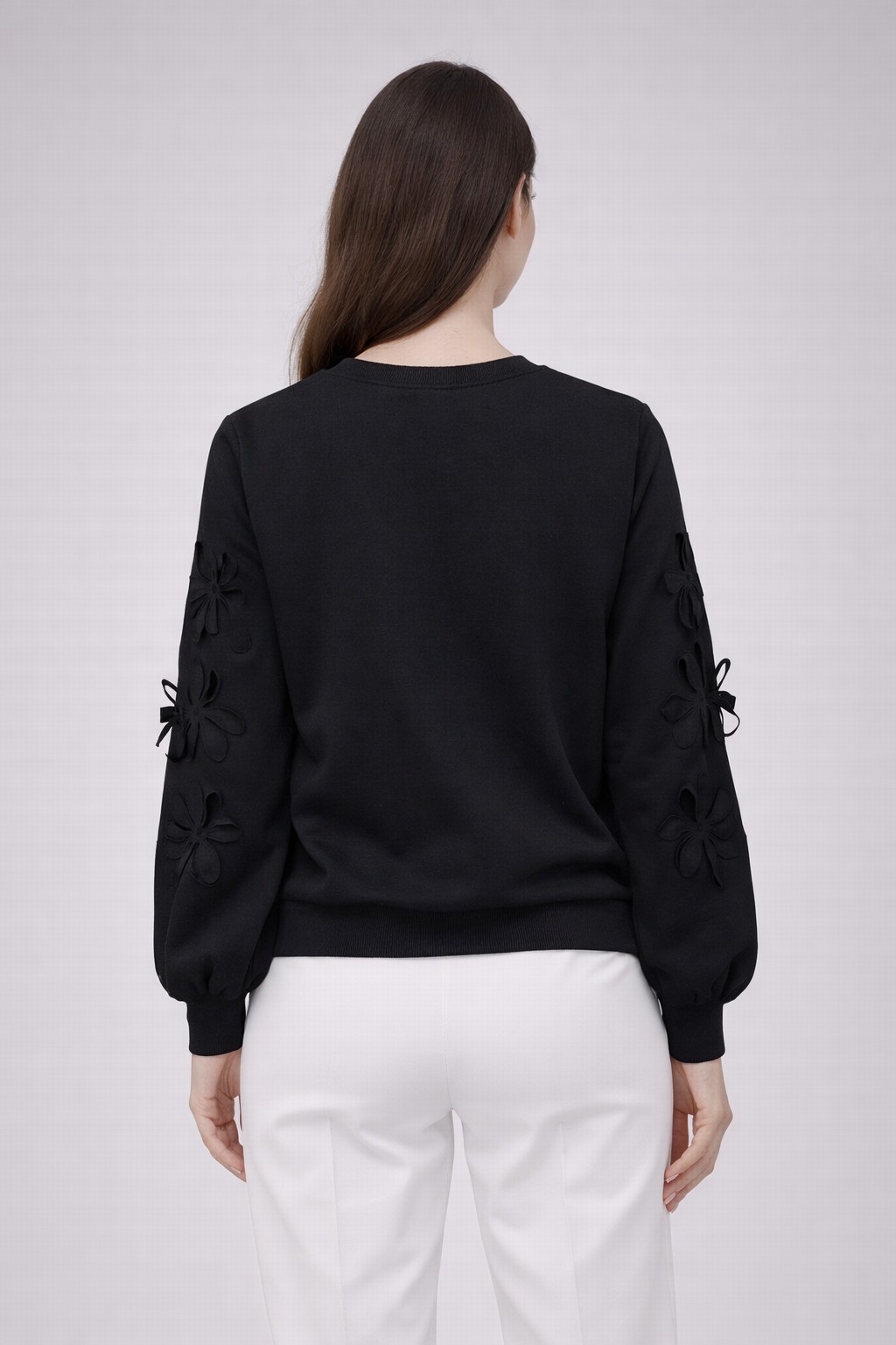 ON TRİKO Çiçek Detaylı Sweat 70351 Siyah