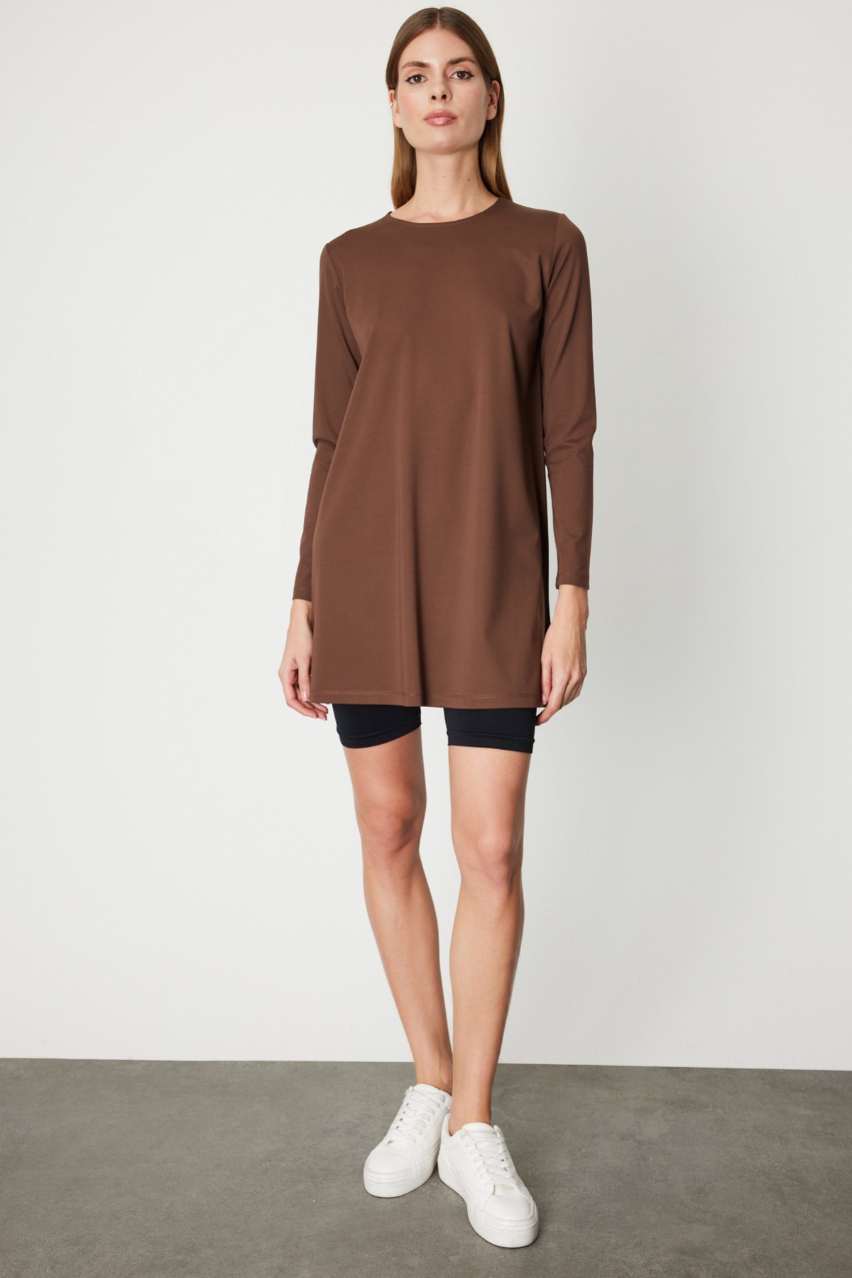 ON TRİKO Uzun Kollu Basic Tunik 61421 Kahve