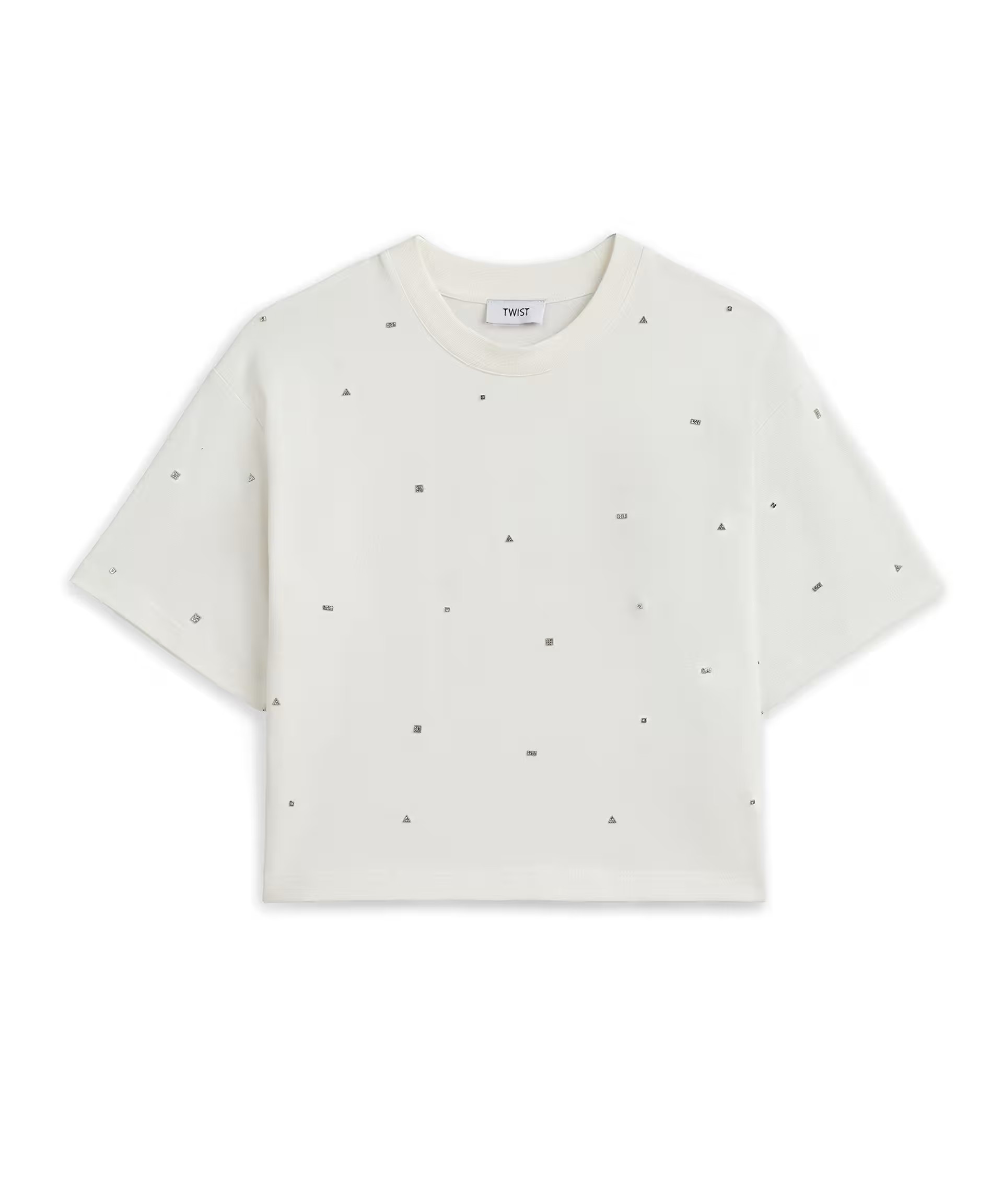 TWİST Triko Karma Aksesuarlı T-Shirt Ekru